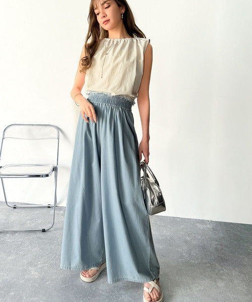 ・タック&ギャザーによるボリュームワイドなシルエット