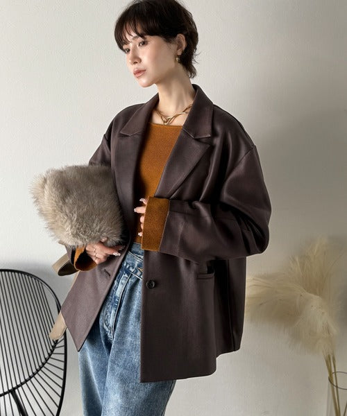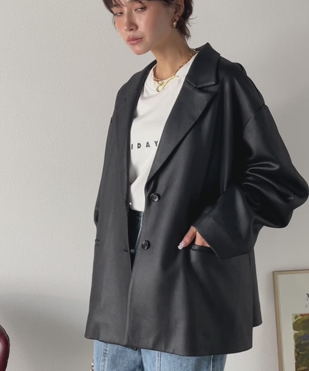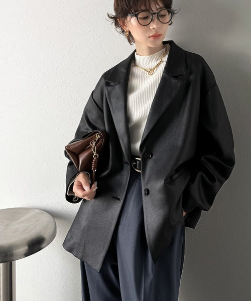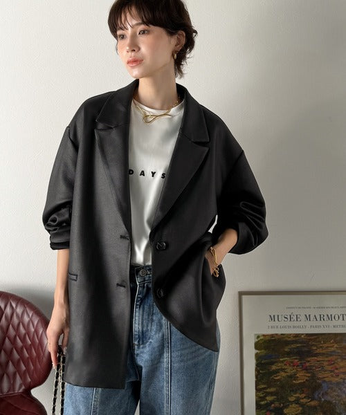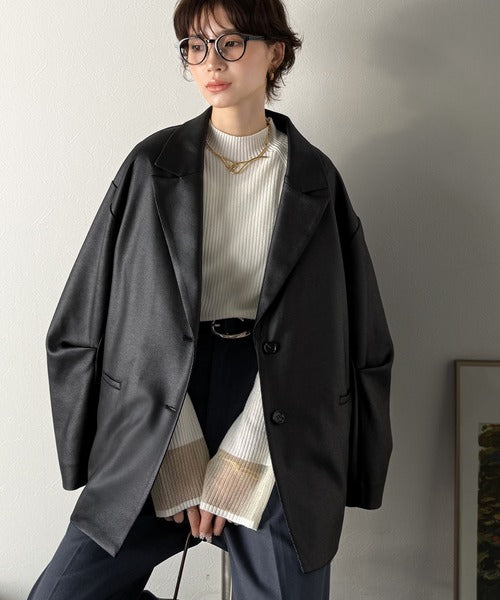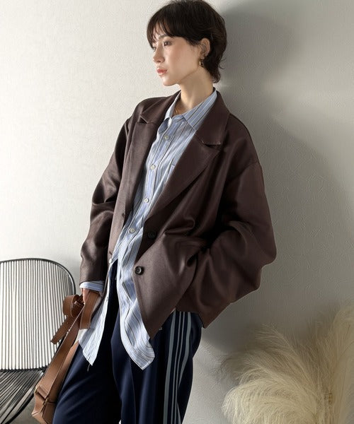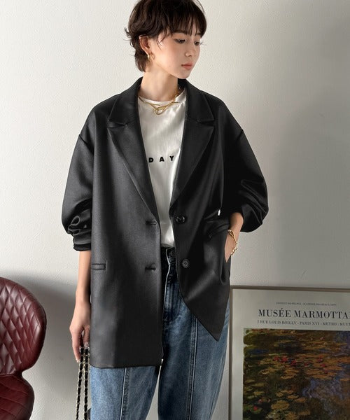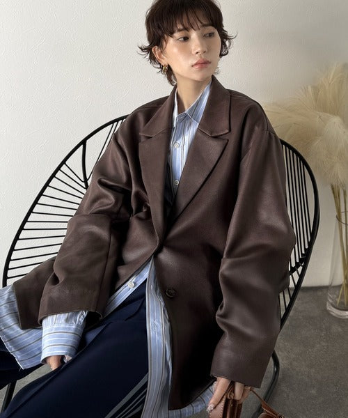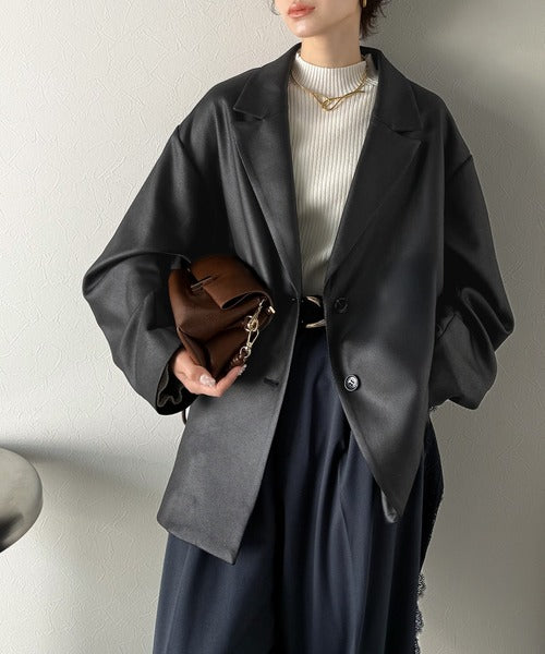 【Classical Evon】羽織るだけで上品ハンサム。レザー風加工スエード袖タックテーラードジャケット(オーバーサイズ) ev1110160