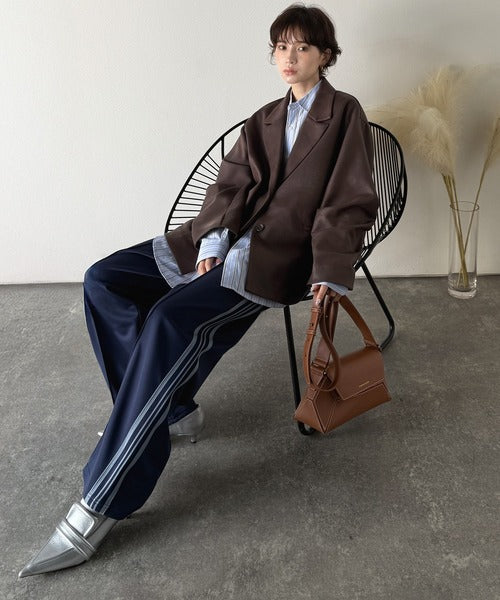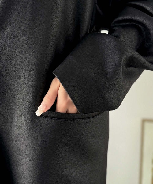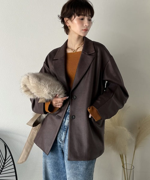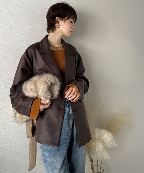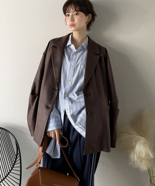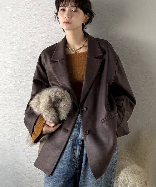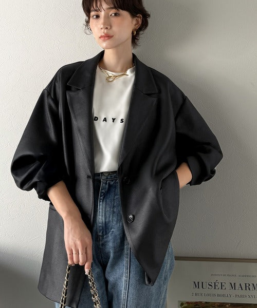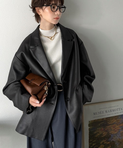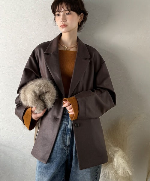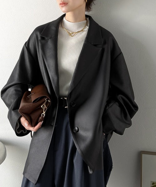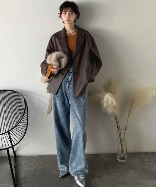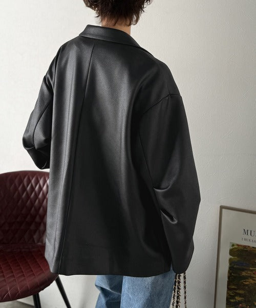 【Classical Evon】羽織るだけで上品ハンサム。レザー風加工スエード袖タックテーラードジャケット(オーバーサイズ) ev1110160