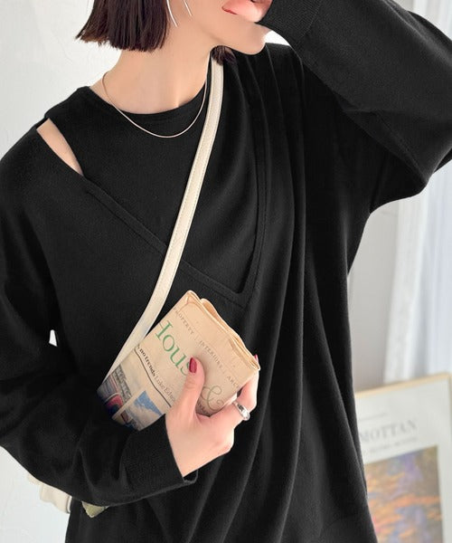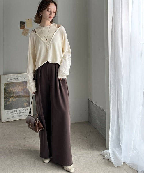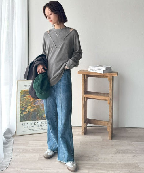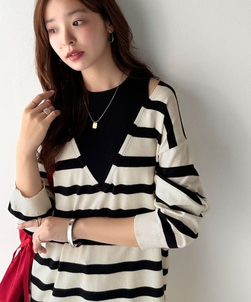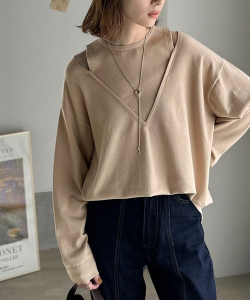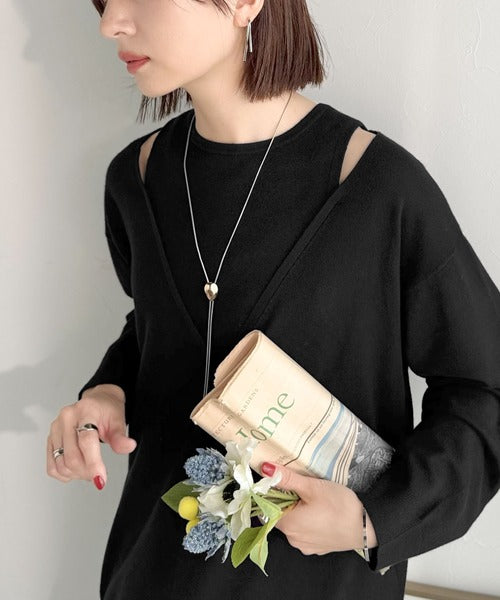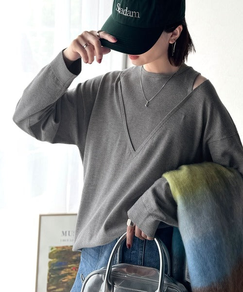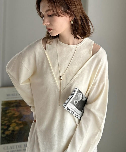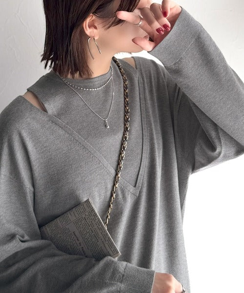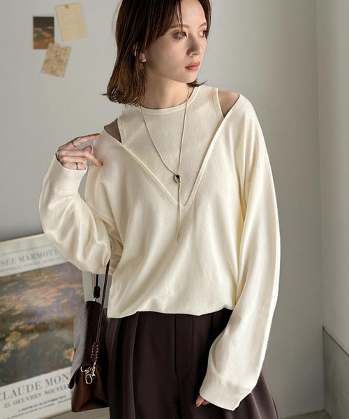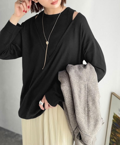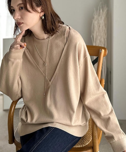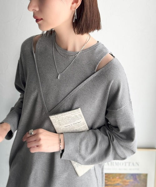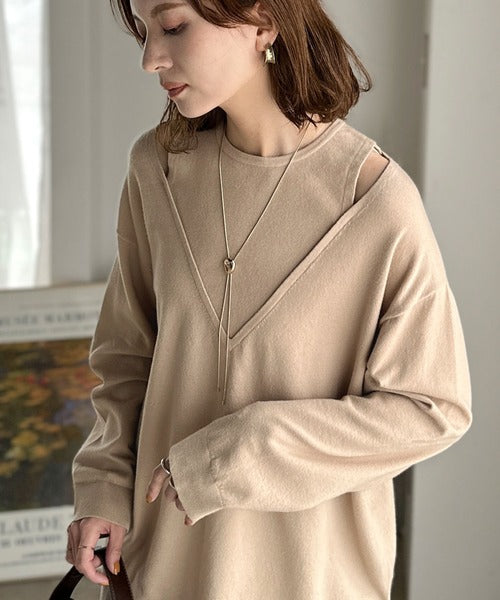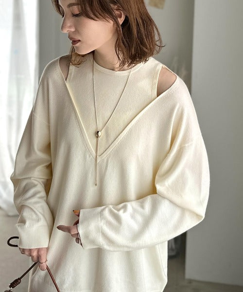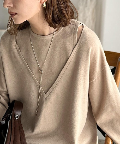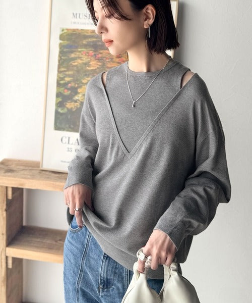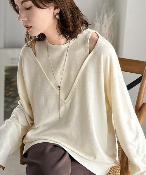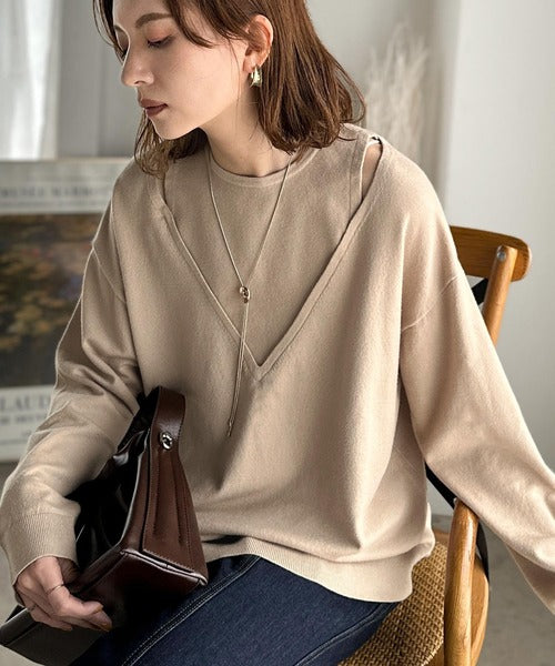 一枚着るだけで、大人の抜け感を演出♪レイヤード風ニットトップス(長袖) ce1020303