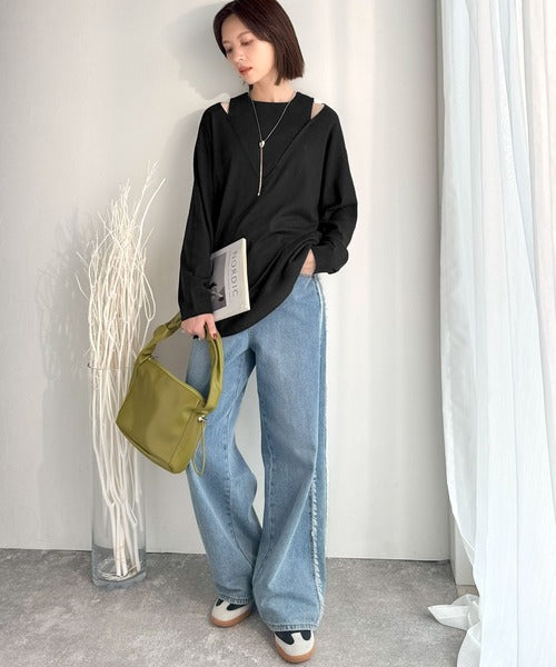 肩のスリットで抜け感たっぷり、ヘルシーな肌見せが叶います◎