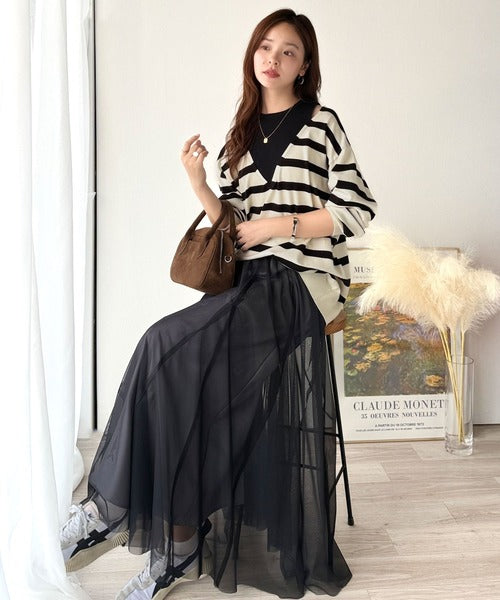 スラックスを合わせればきれいめに、ティアードスカートを合わせれば甘めカジュアルにと