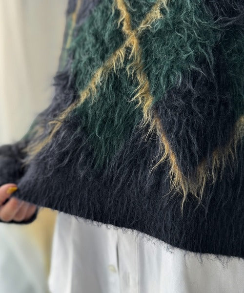 シンプルコーデに差をつける一着。長起毛アーガイル柄ニットプルオーバー ce1020328