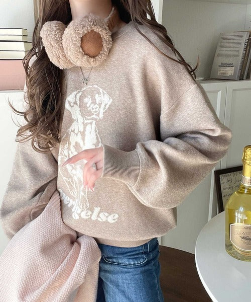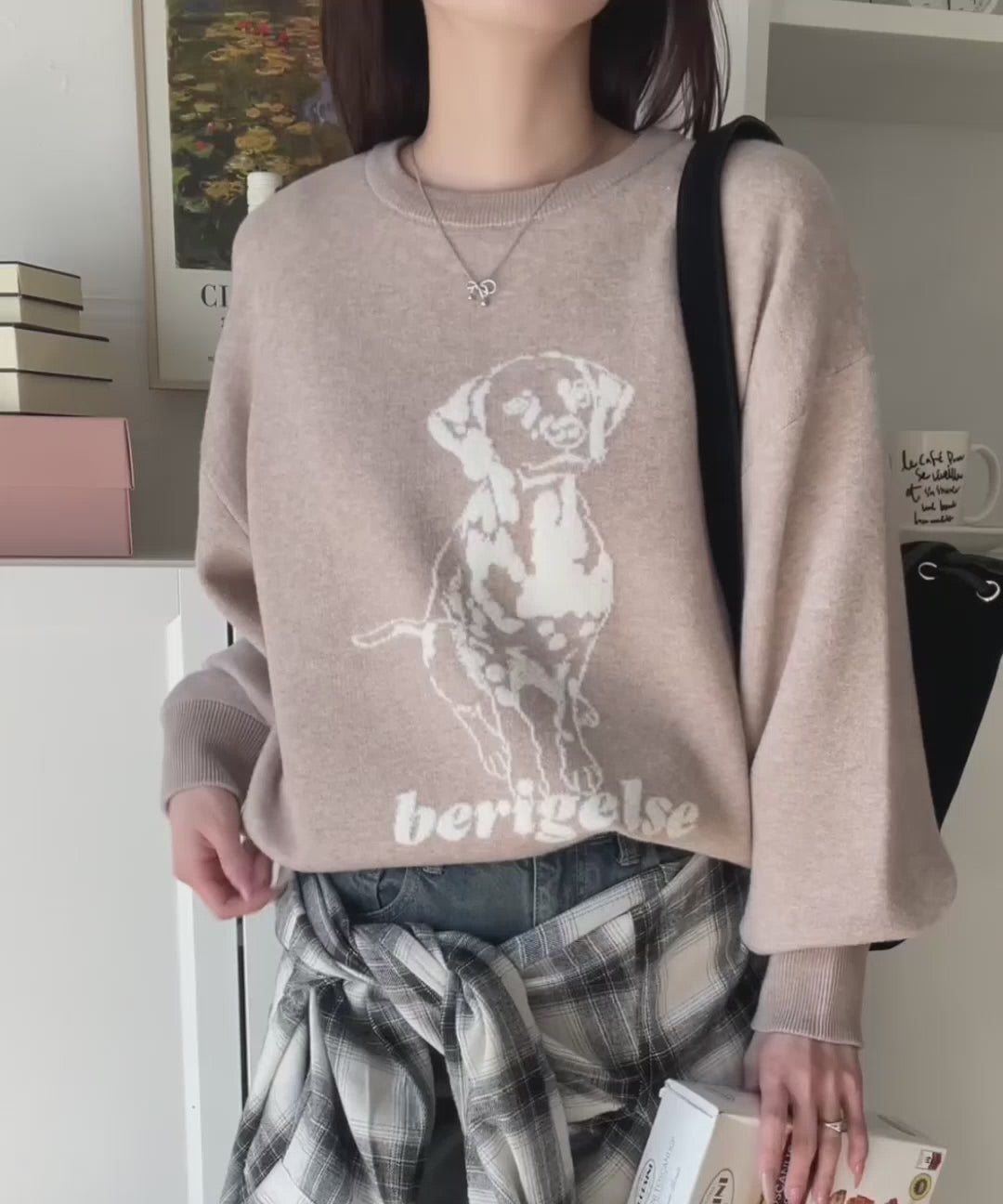 着心地抜群!大人かわいいスタイルに♪ダブルジャガード配色ダルメシアン柄ニット ce1050342