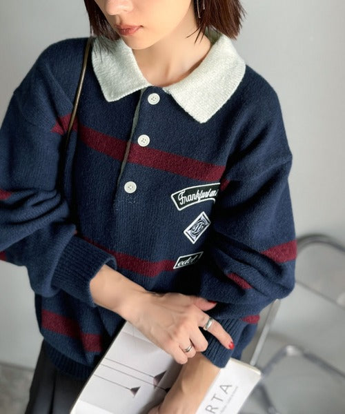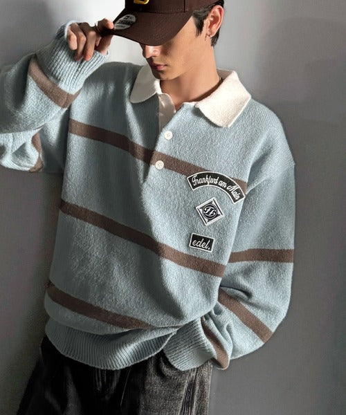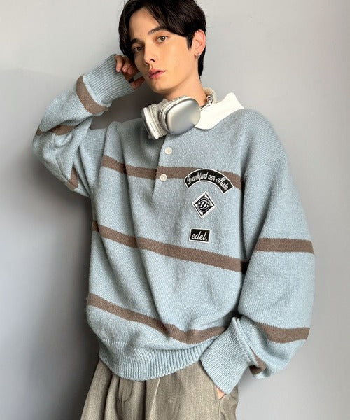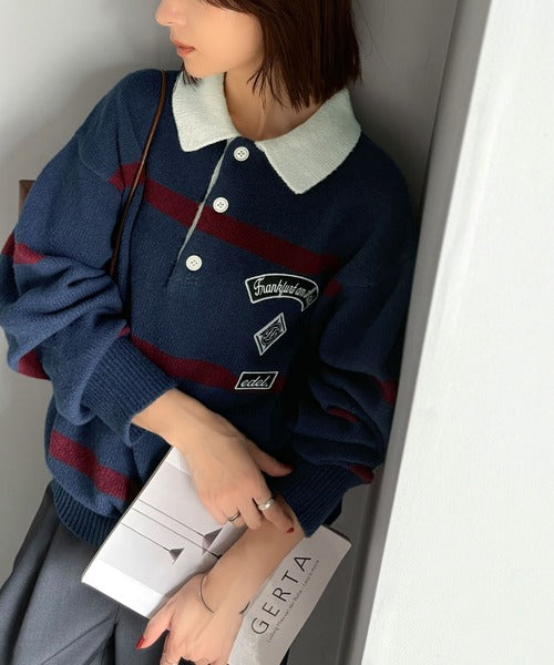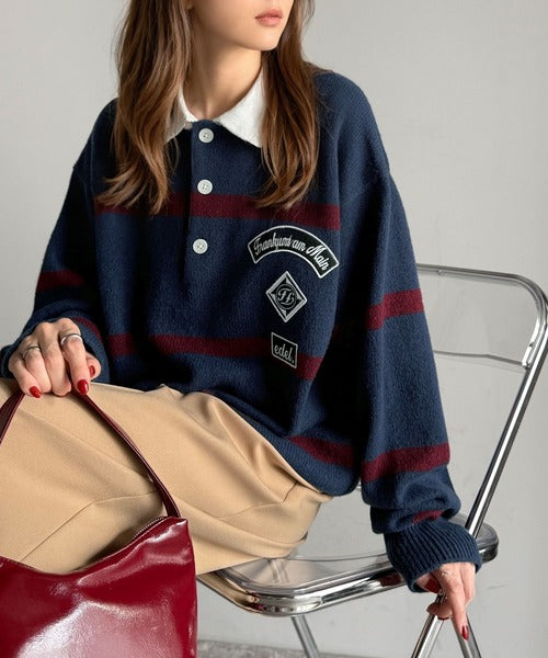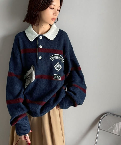 新しいスタイルを提案するワッペンデザインラガーポロニット。