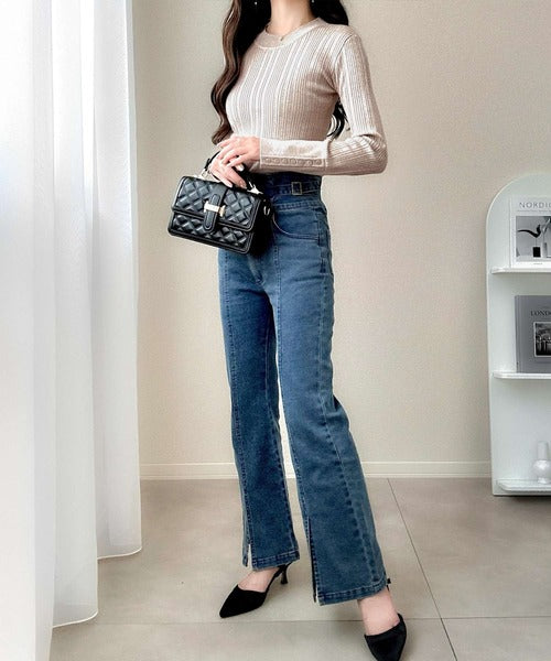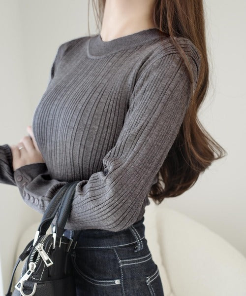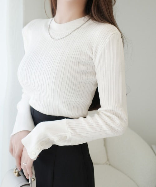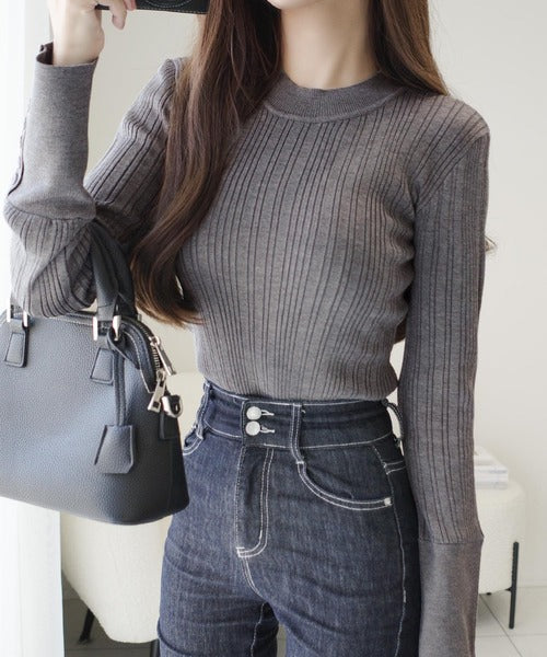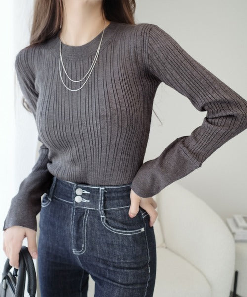 タイトシルエットの上品リブニット。
