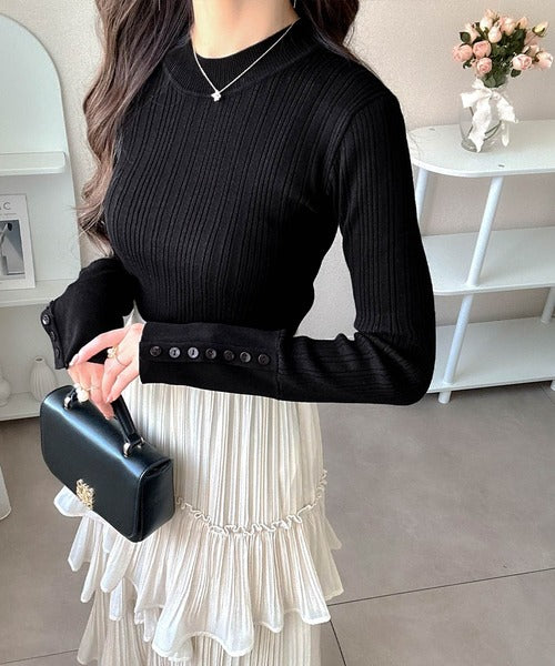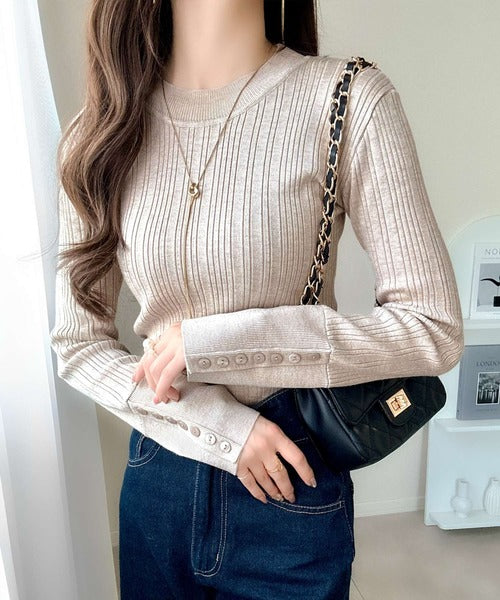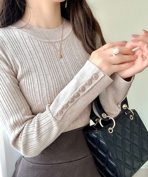【mily bilet】大人可愛い素材とシルエット♪袖ボタン使いランダムリブニット(長袖) mi1259017
