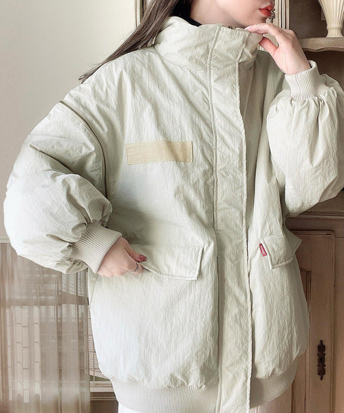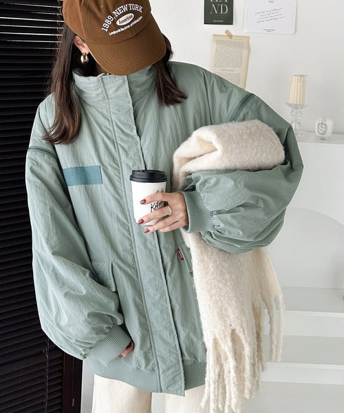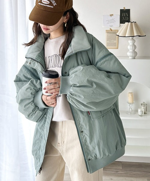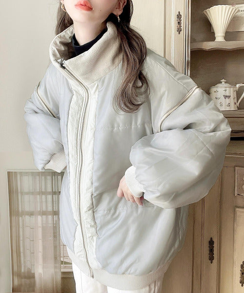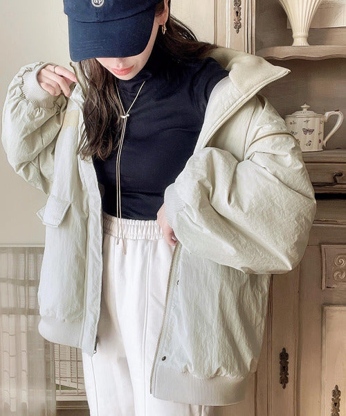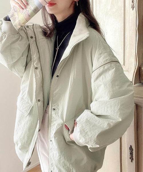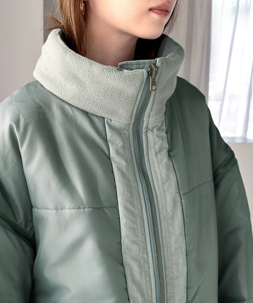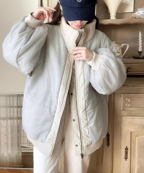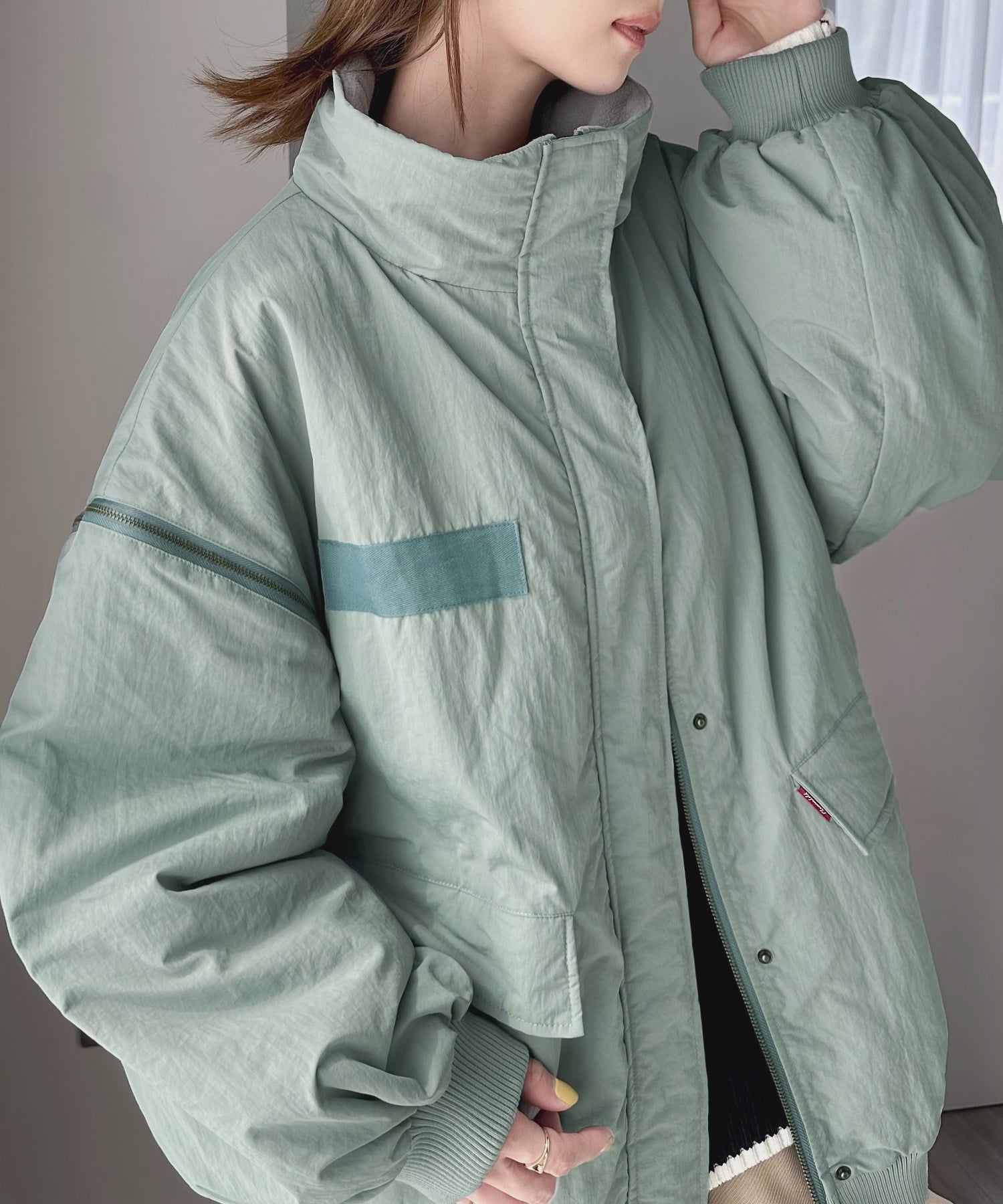 裏返せばボーダーキルティングステッチ入りの中綿ブルゾンとして、それぞれ違ったコーディネートを楽しめます。