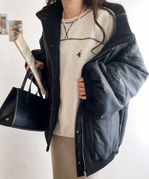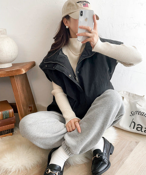 ゆとりのあるサイズ感なので、寒い日にはインナーにニットやトレーナーもストレスなく合わせることができます。