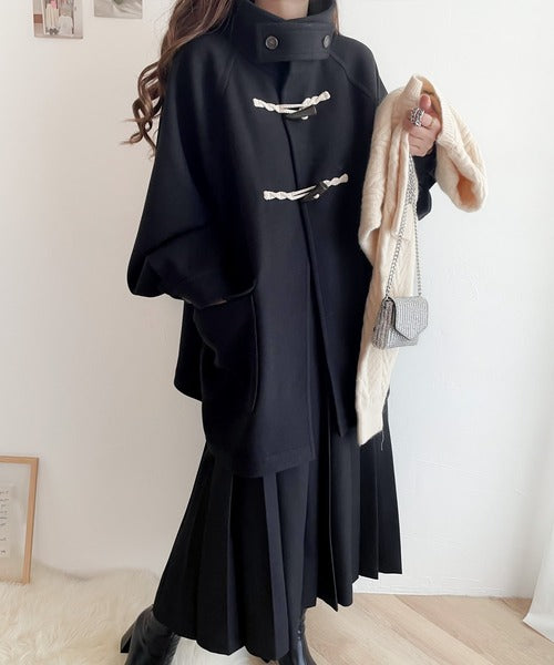 フロントのトグルボタン×配色ロープで定番のダッフルコートにこなれ感を出し、