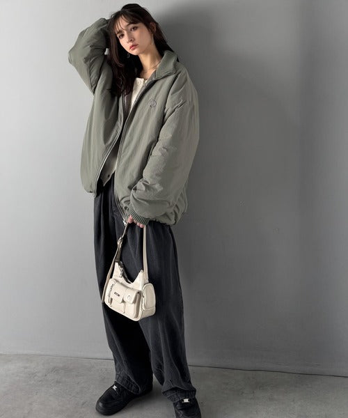 前後差のあるシルエットとリブハイネックが印象的な中綿ブルゾン。