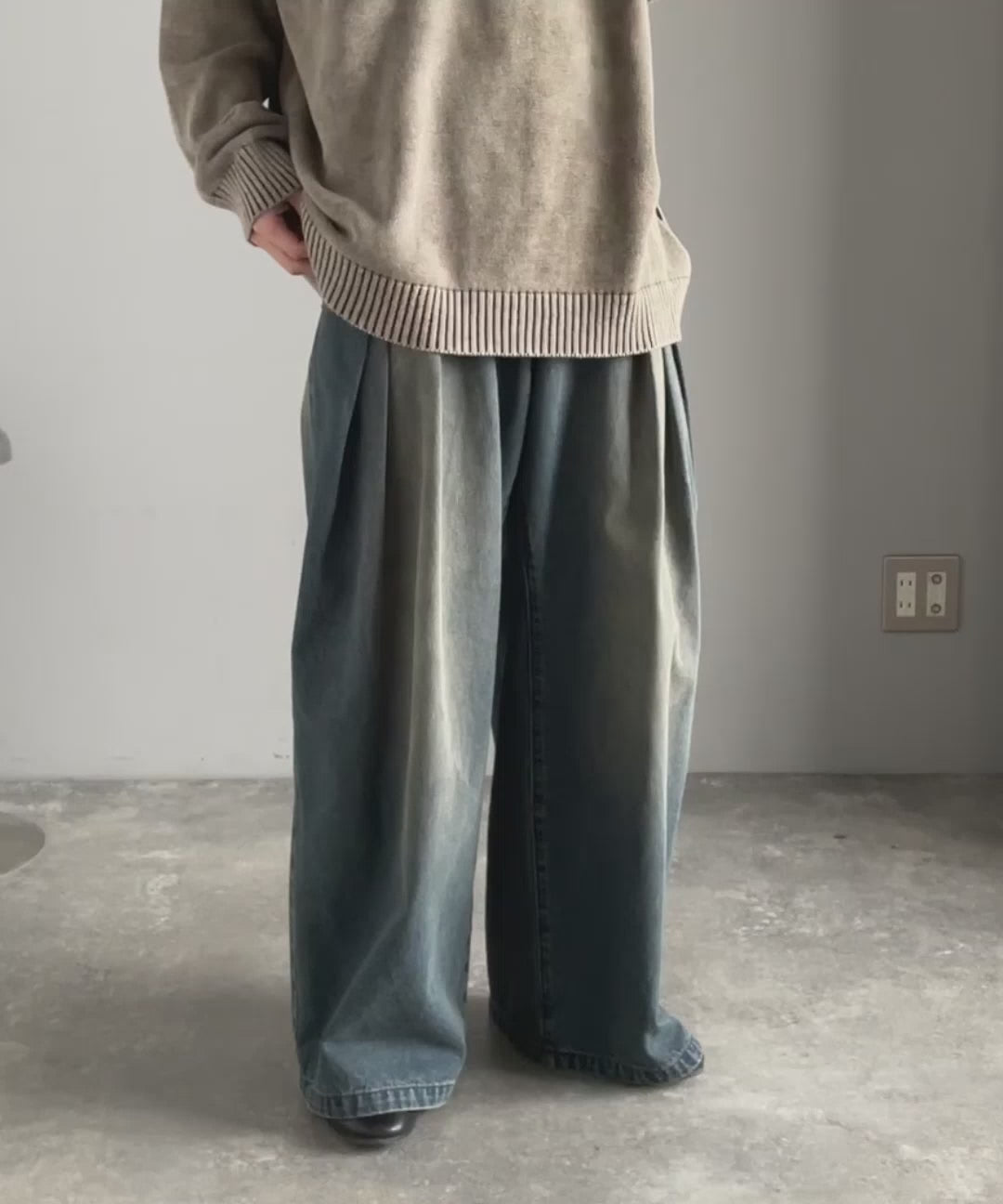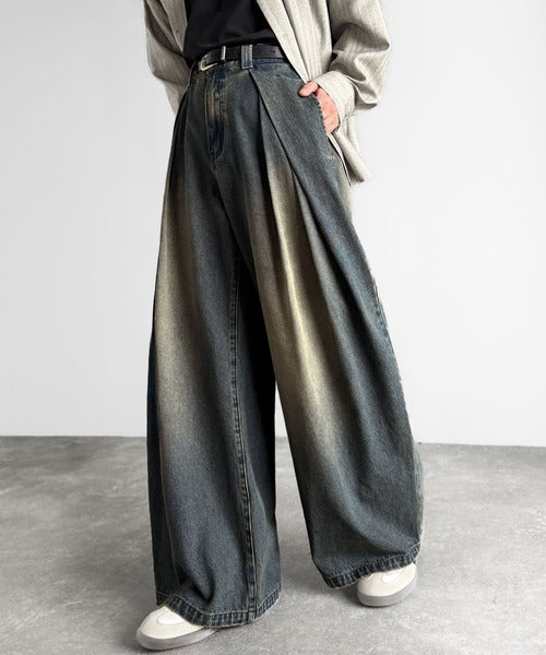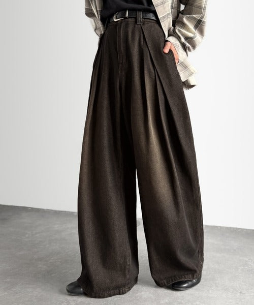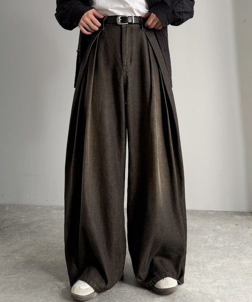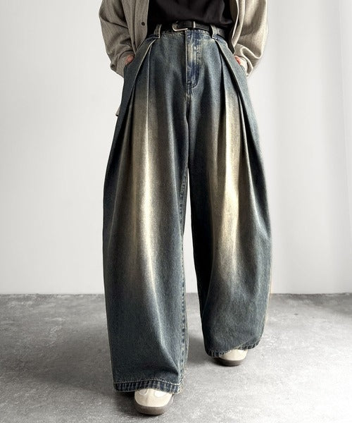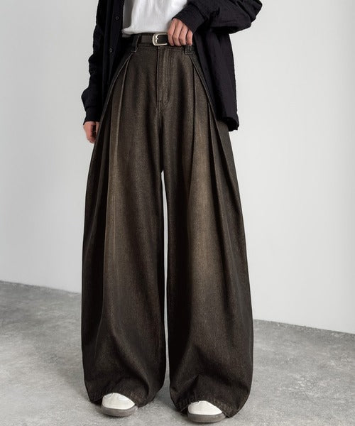 ヴィンテージ加工3タックワイドバルーンデニムパンツ/Vintage-Washed Three-Tuck Wide Balloon Denim Pants co0900009