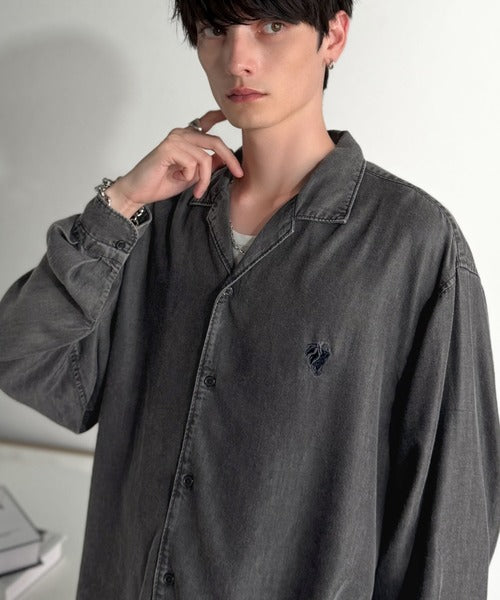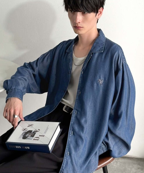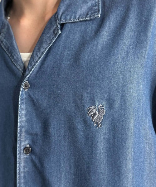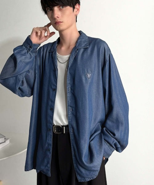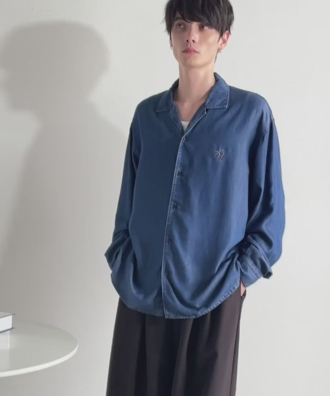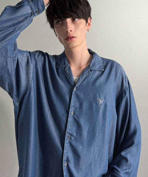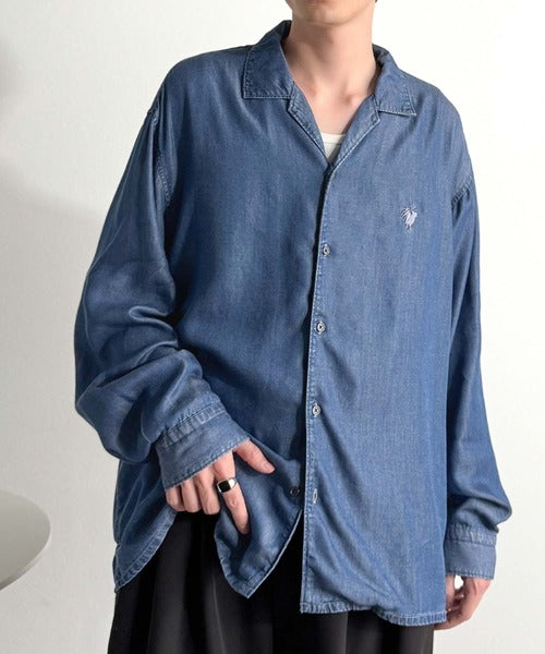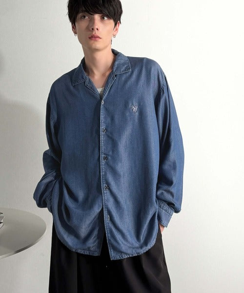 「Loose Fit Open Collar Denim Shirt/ルーズフィットオープンカラーデニムシャツ」