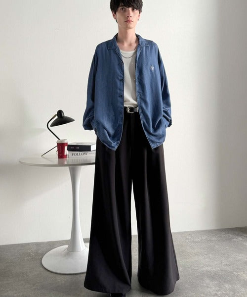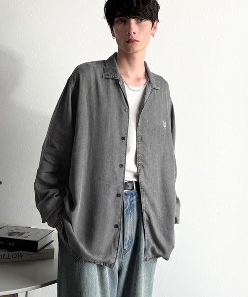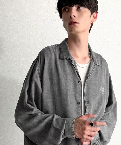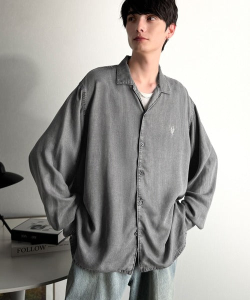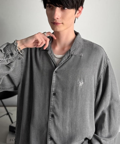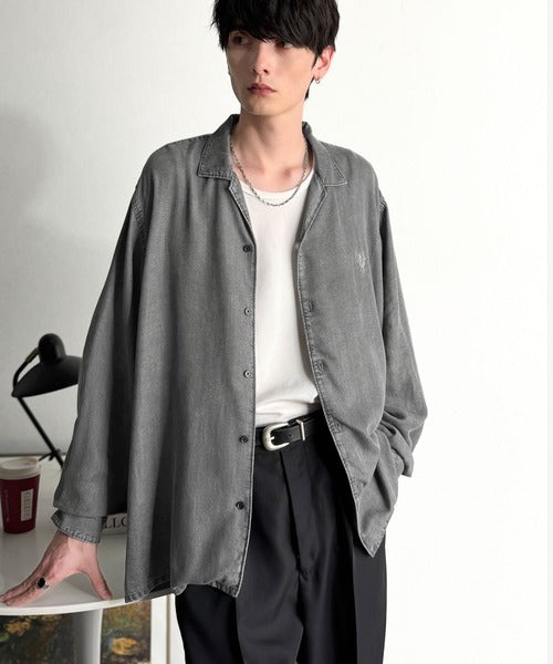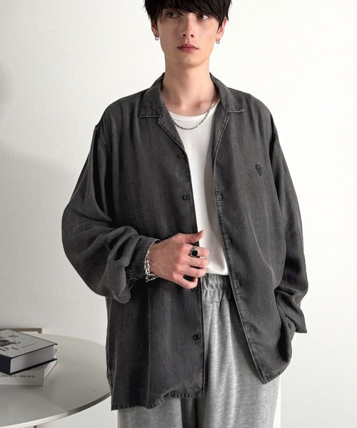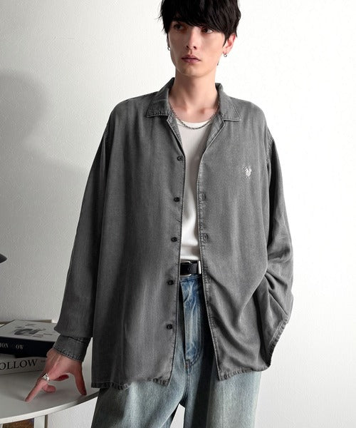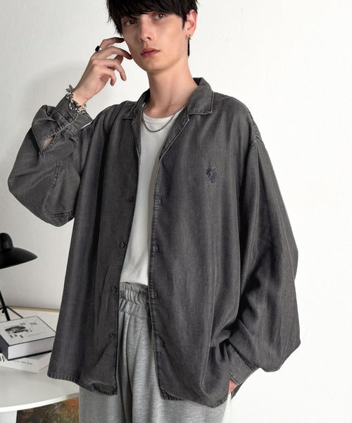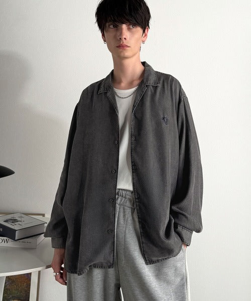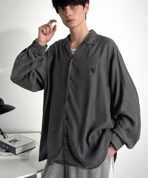 「Loose Fit Open Collar Denim Shirt/ルーズフィットオープンカラーデニムシャツ」