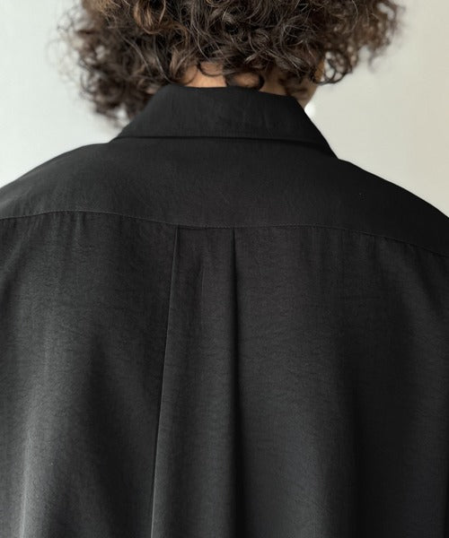 開襟でもレギュラーでも着られる2WAYデザインのキャンプカラーシャツ。