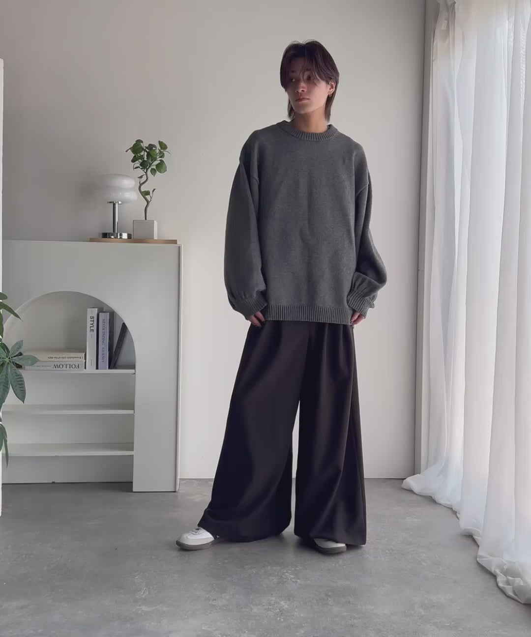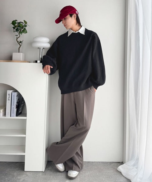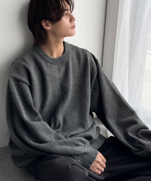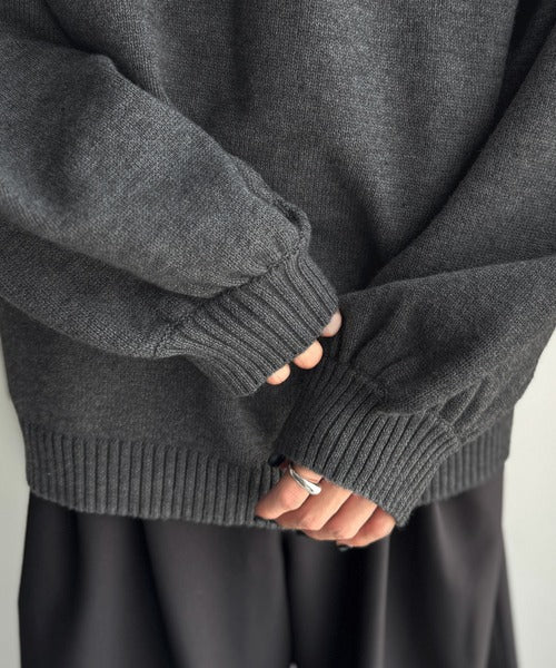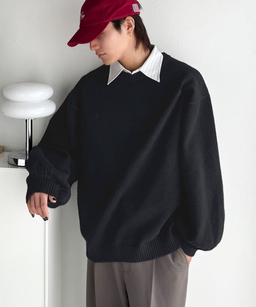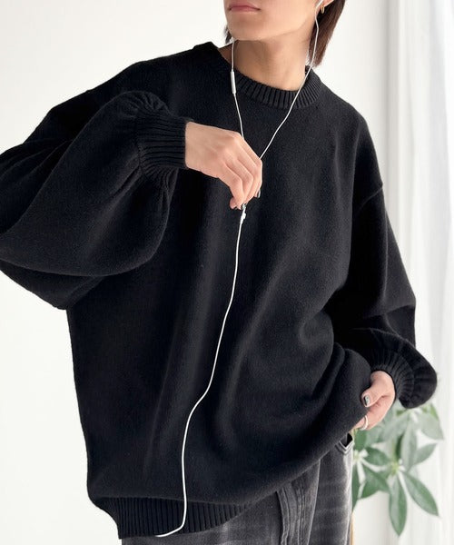 ゆったりとしたサイズ感とボリュームのある袖は、シンプルながら存在感のあるニットです。