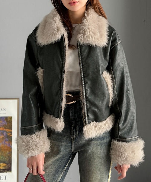 ふんわりボリュームのあるファーを組み合わせたライダースジャケット。