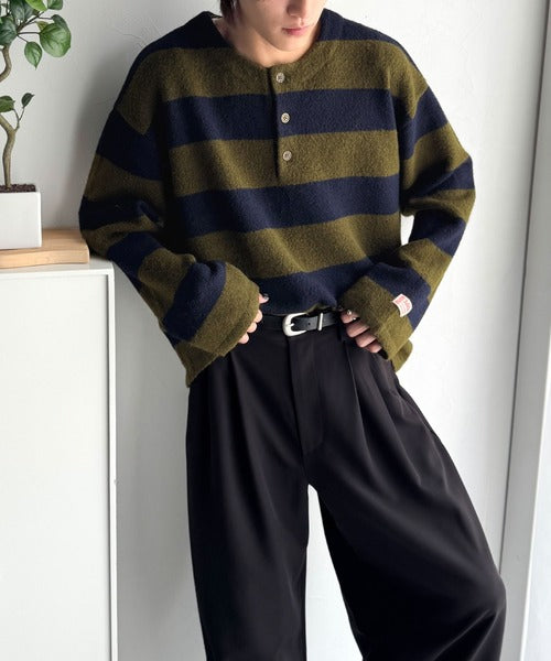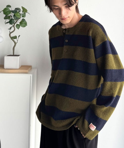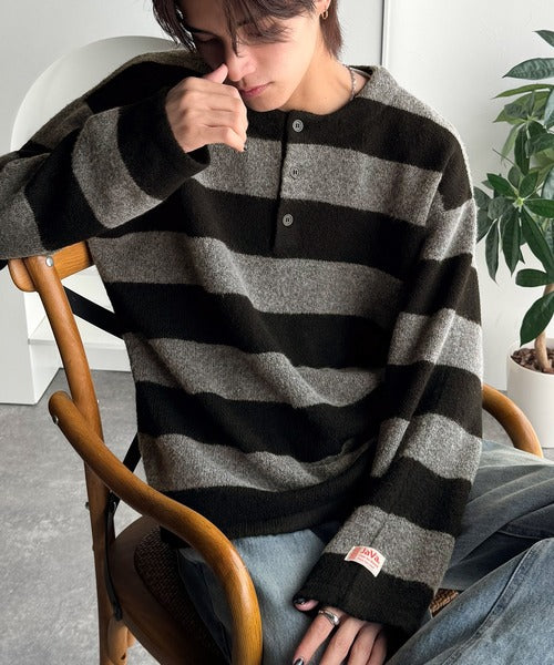 《JaVaジャバコラボ》クラシカル×モダンな一枚。ラガーデザインリラックスニット(長袖) jm1020270