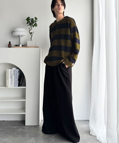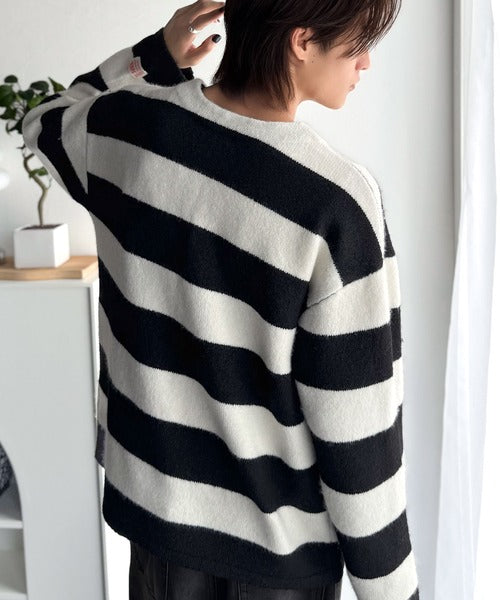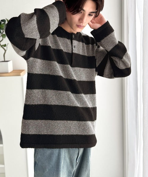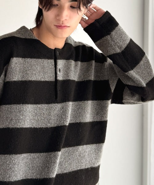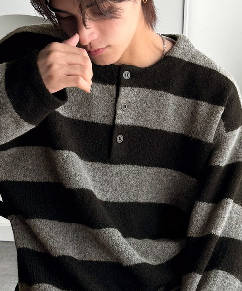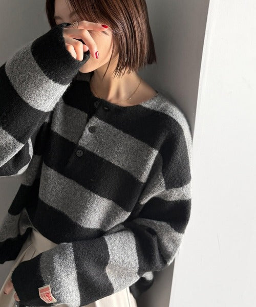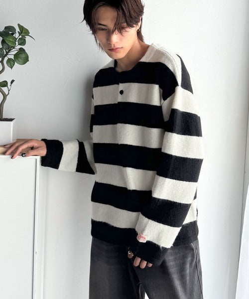 カジュアルな印象のラガーデザインを、もちっとしたニット素材でアレンジ。