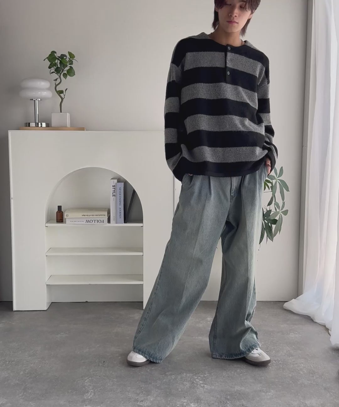 伝統的なラガーデザインをベースに、現代的なサイジングと素材感で再構築した一枚。