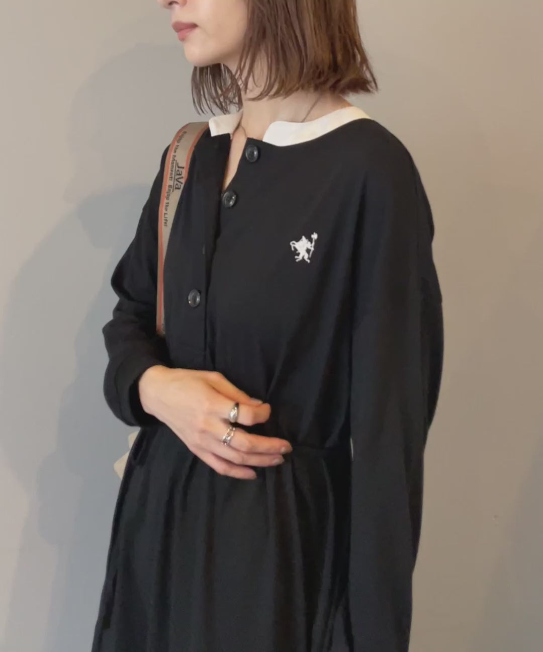 オーバーサイズシルエットが特徴のヘンリーワンピース。