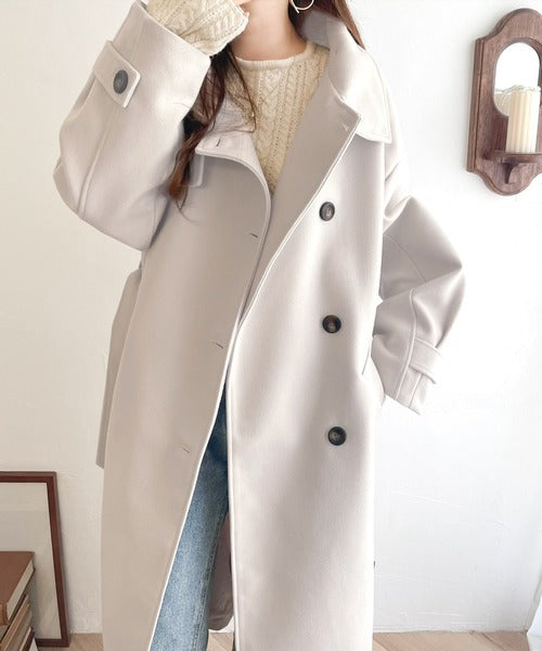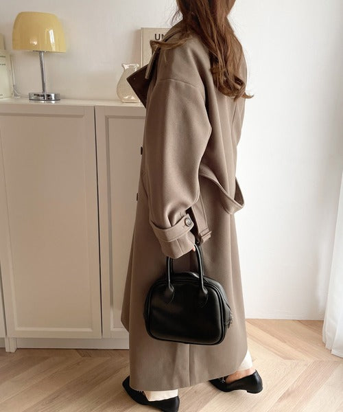 衿を倒してウエストベルトを締めればスタンダードなトレンチコート風に。