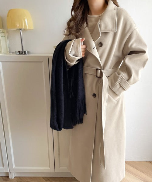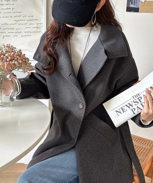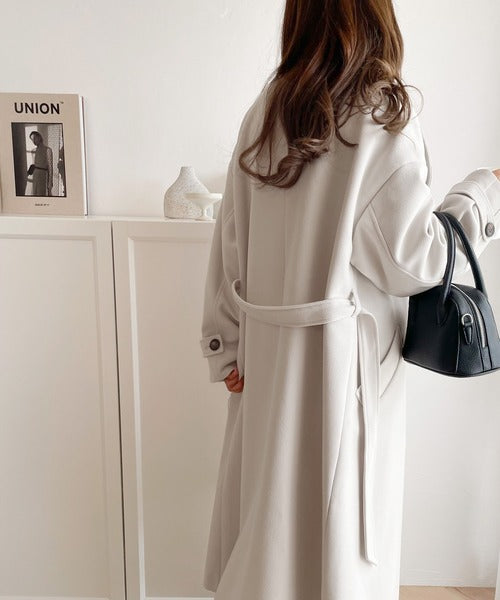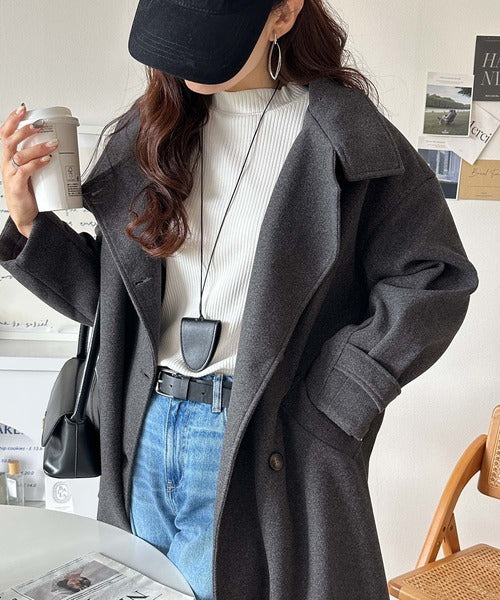 衿やベルトの着方によって表情が変わるマルチで上品な大人魅せアウターです。