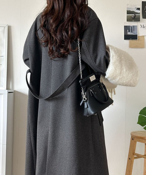 ロングワンピースやロングブーツに合わせれば最旬スタイリングに。