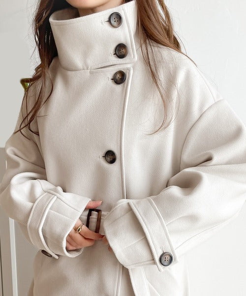 高さのあるスタンドカラーでマフラー要らずな首元の暖かさ!