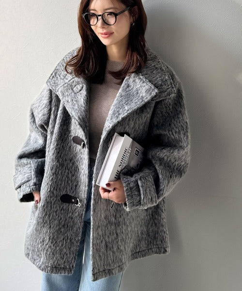 羽毛のように軽やかで柔らかなシャギー素材を贅沢に使用した、季節感たっぷりのコートです。