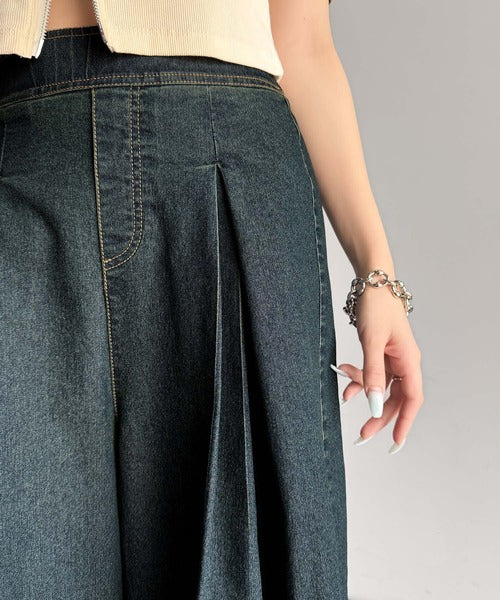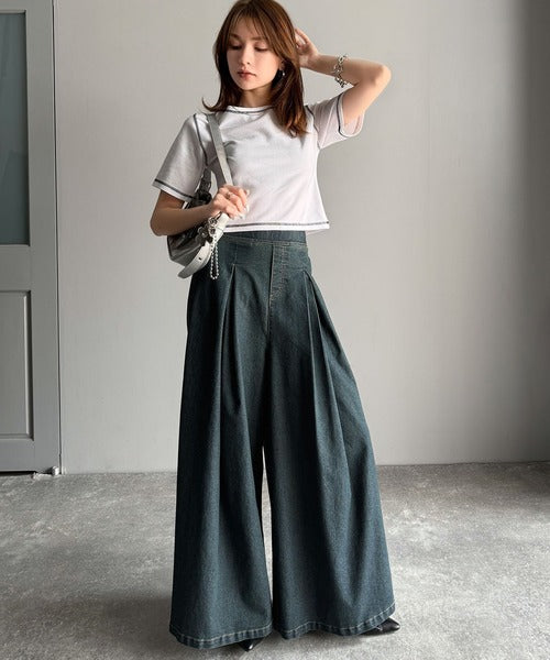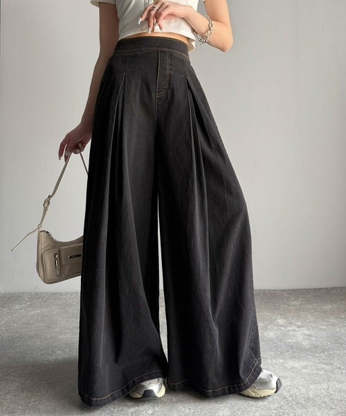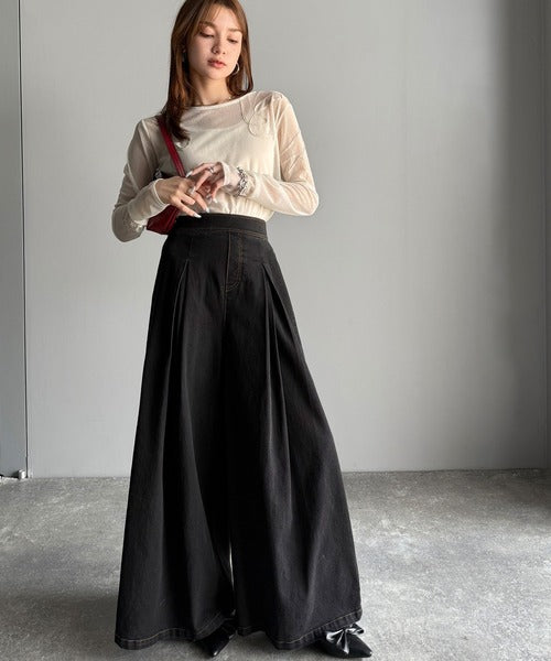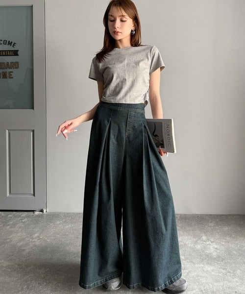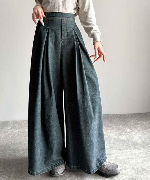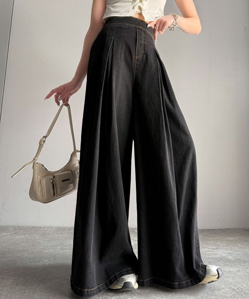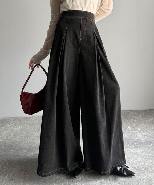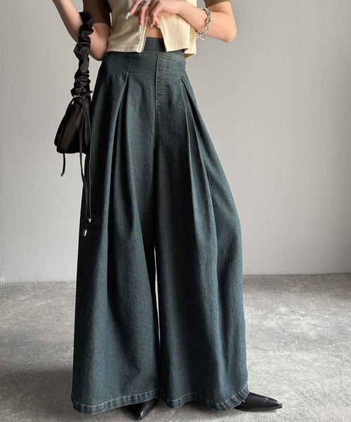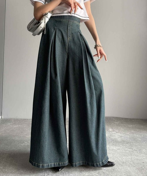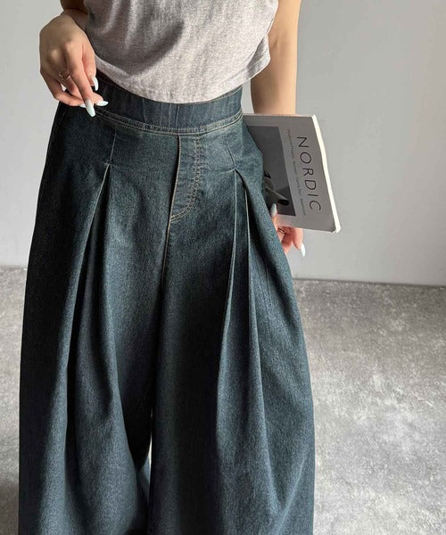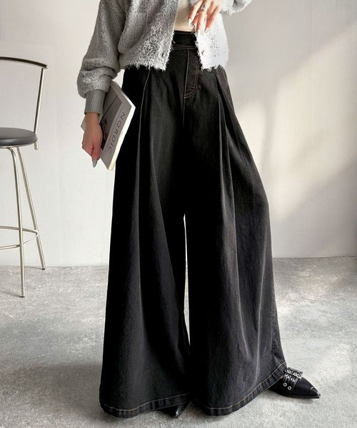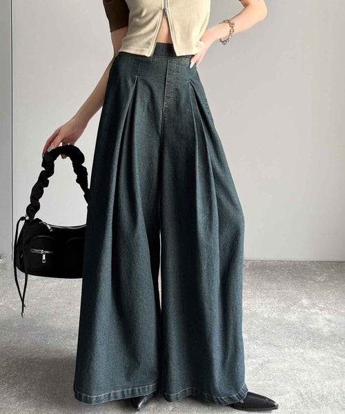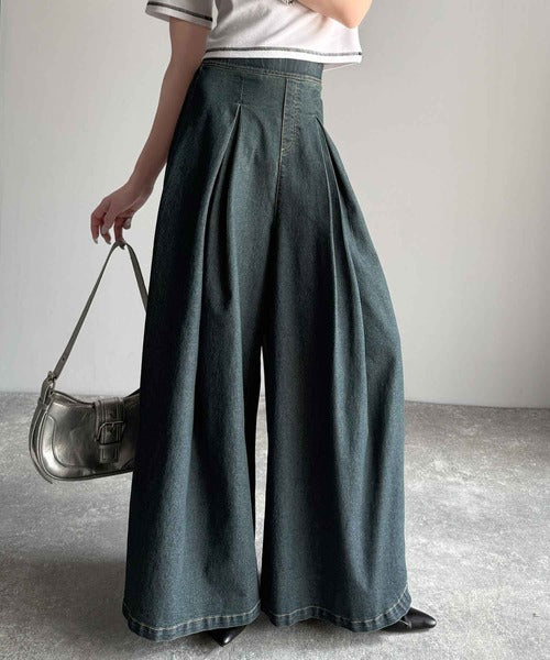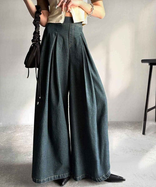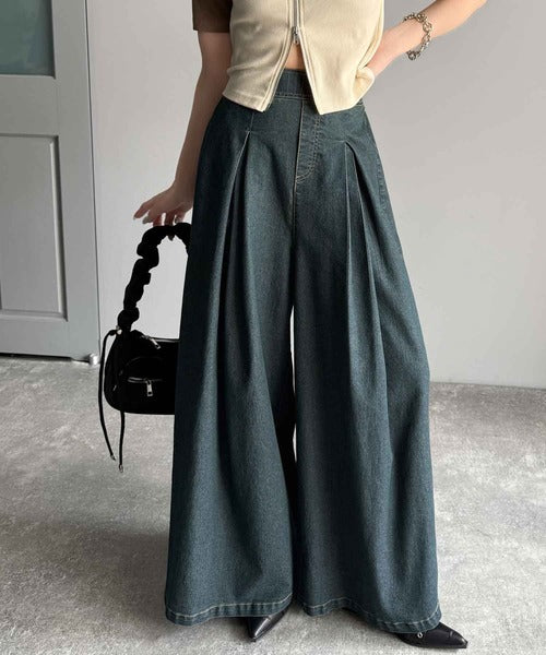 こなれ度アップのヴィンテージ風。変形タック使いワイドデニムパンツ ce0940245