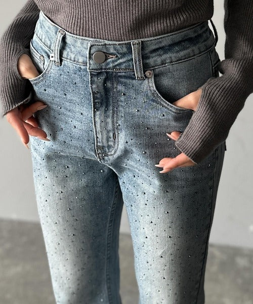 キラリと輝くビジューストーンを散りばめたこだわりのデニム。