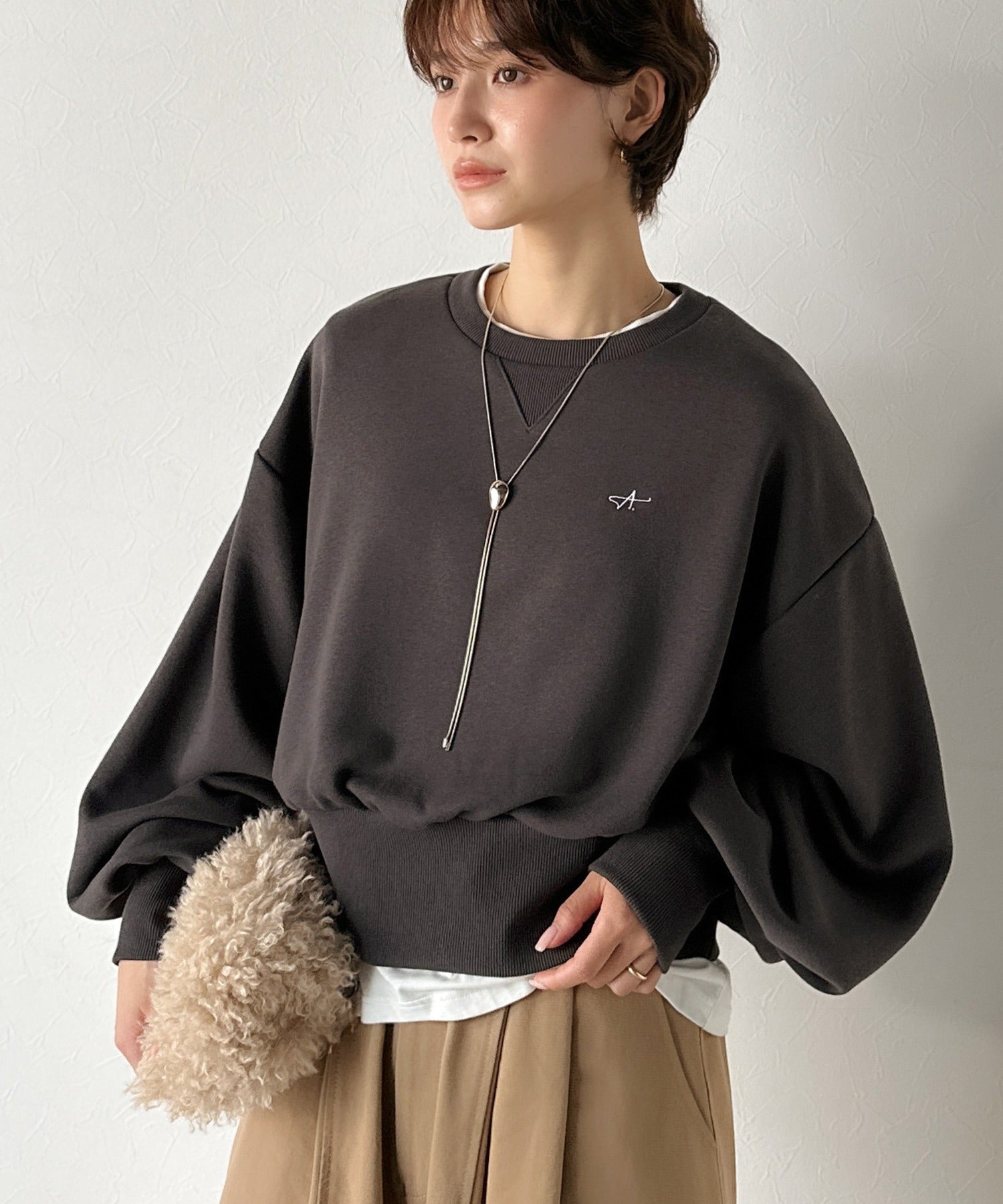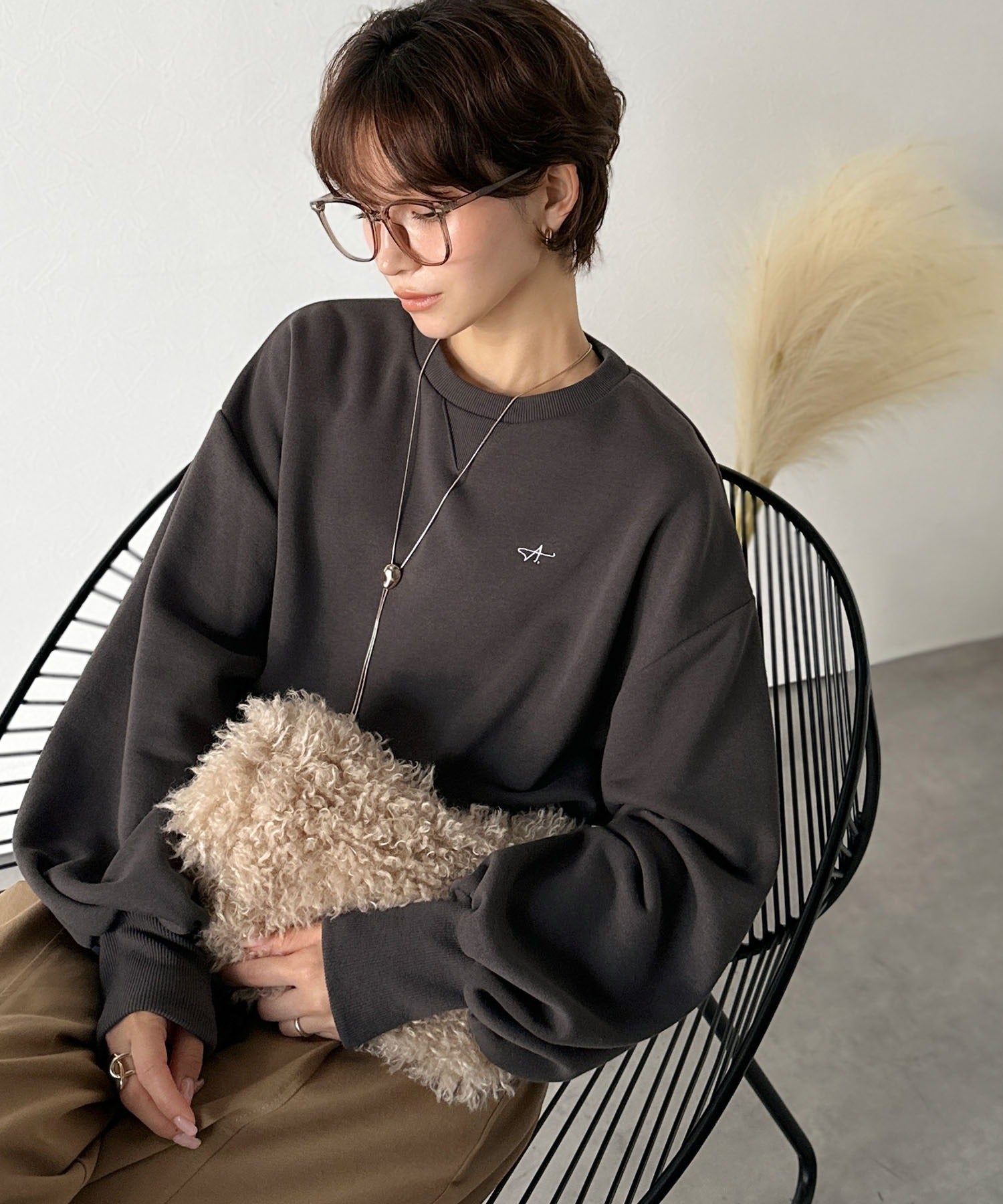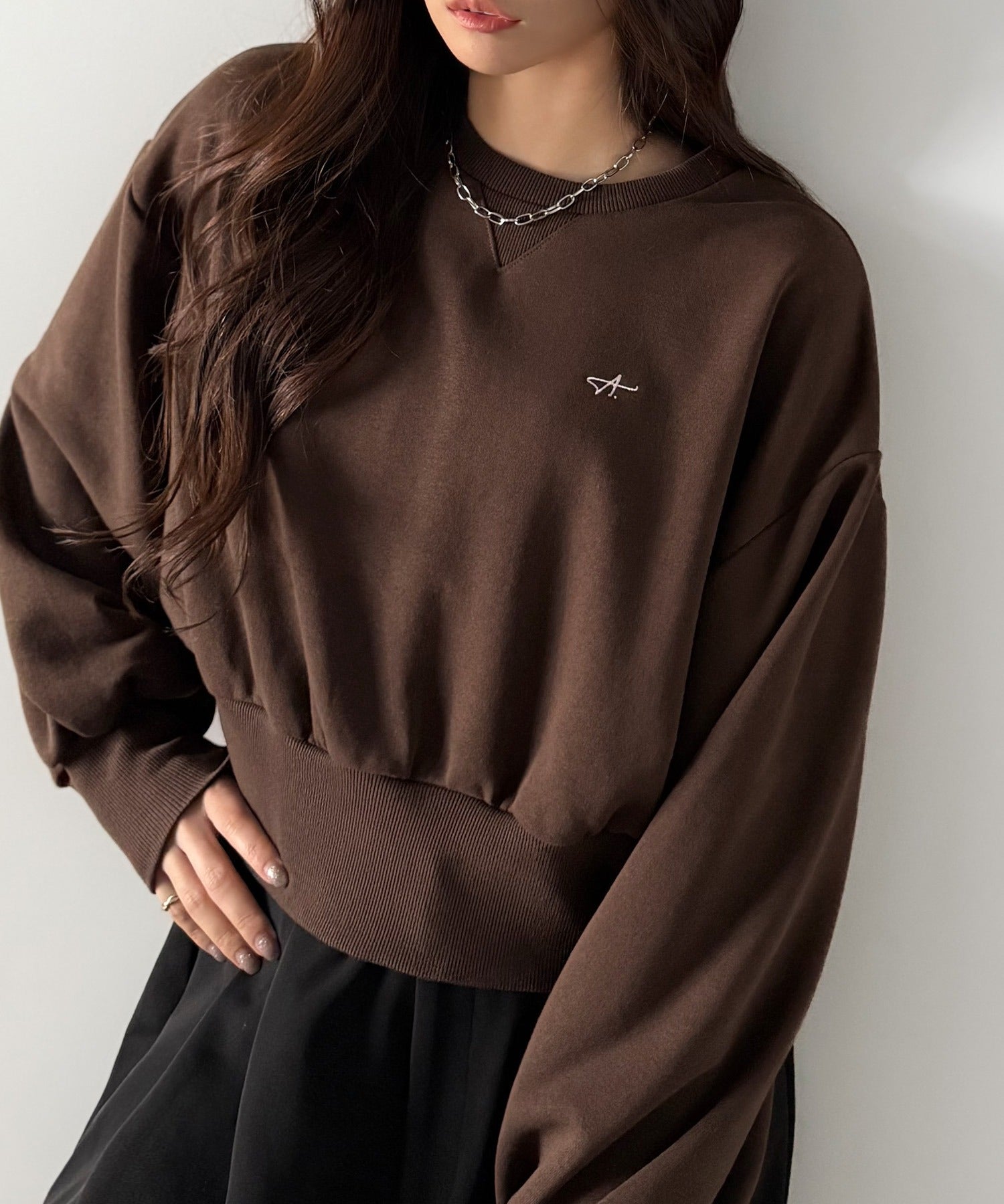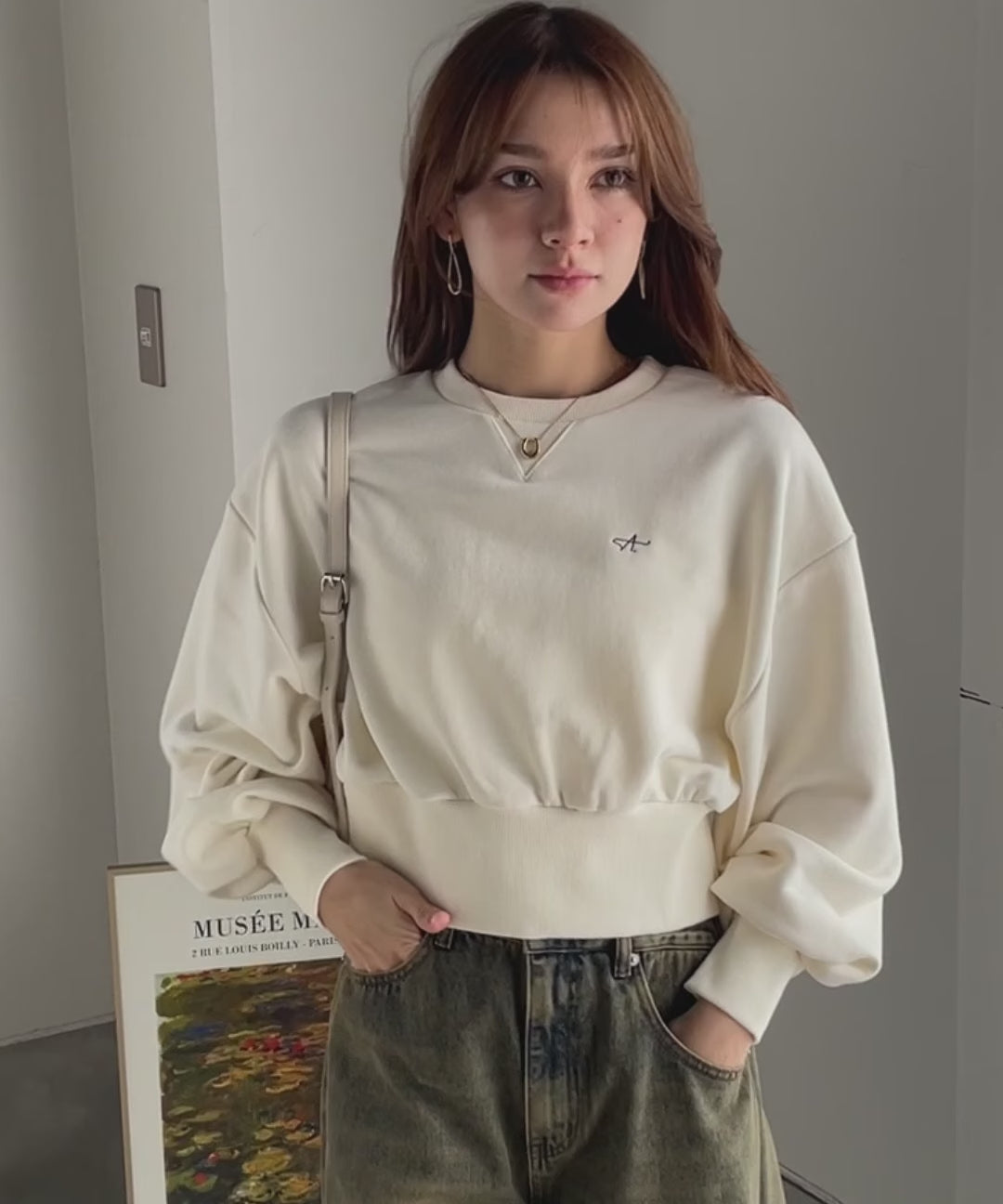 《AYA×クラシカルエルフコラボ》カジュアルなのにちゃんと女っぽ♪胸元刺繍が映える。クロップド丈裏毛スウェット(セットアップ可) ce1010520