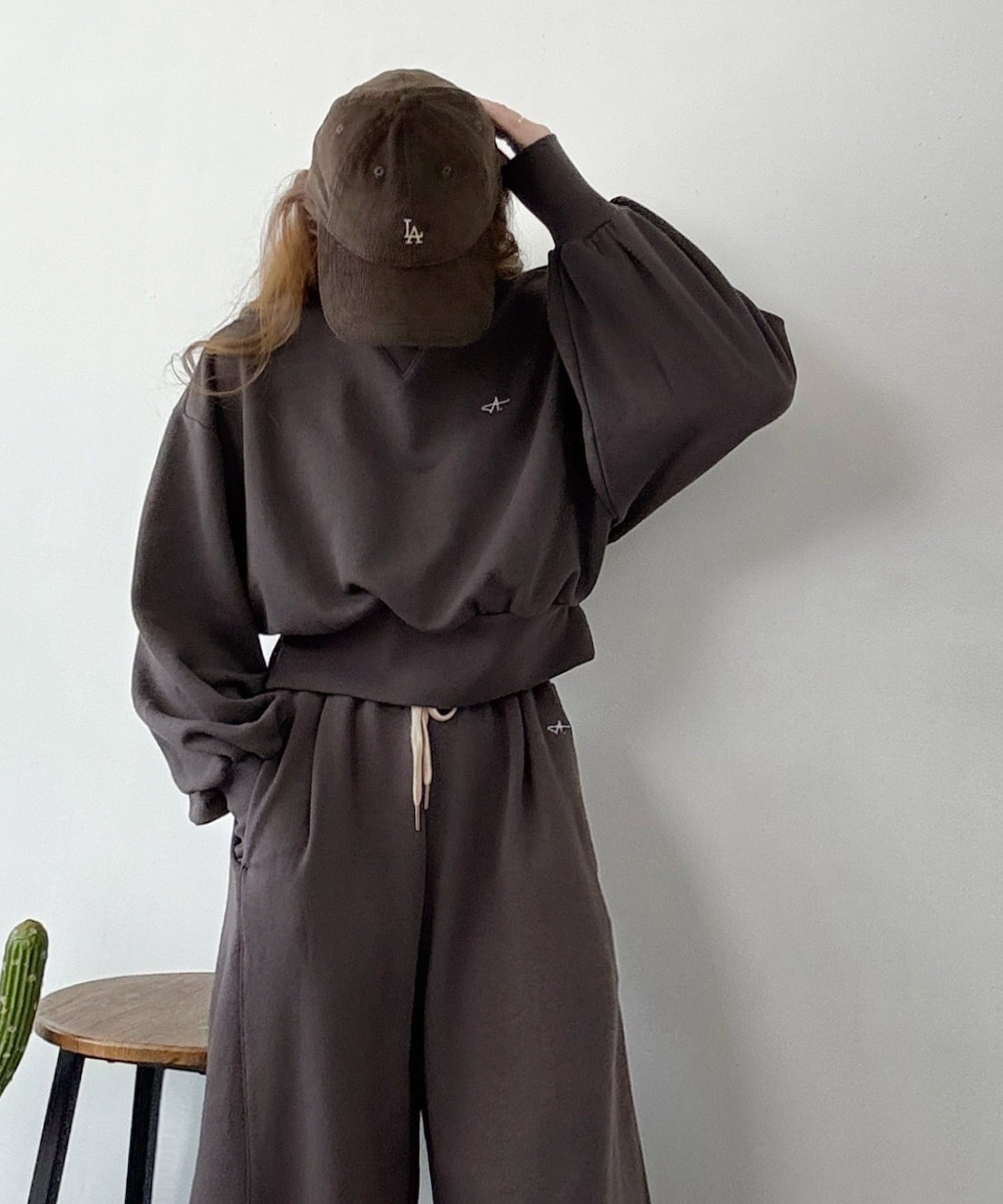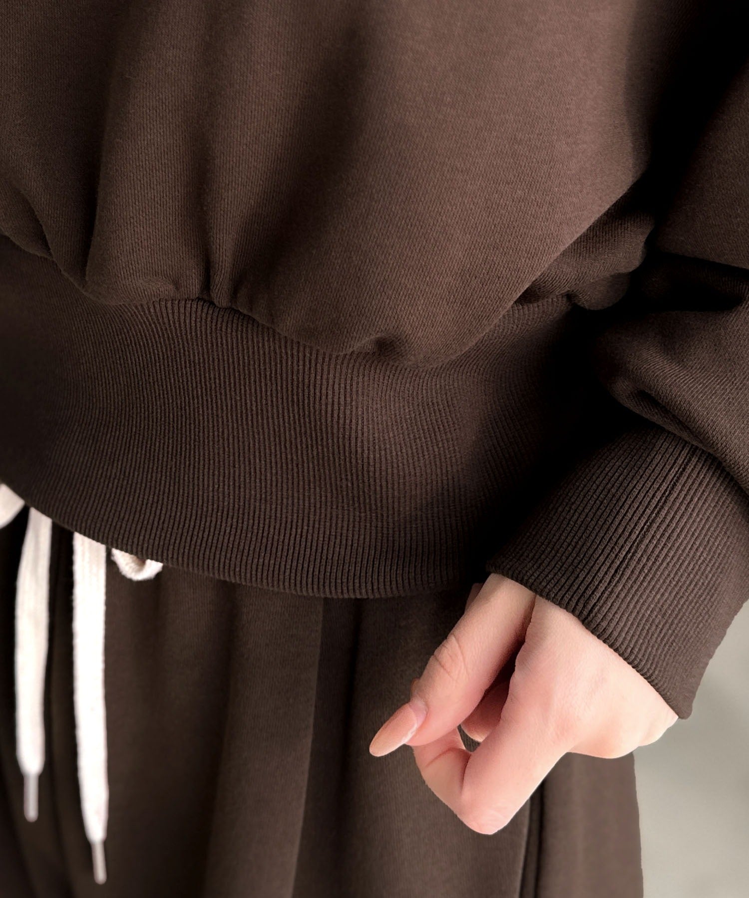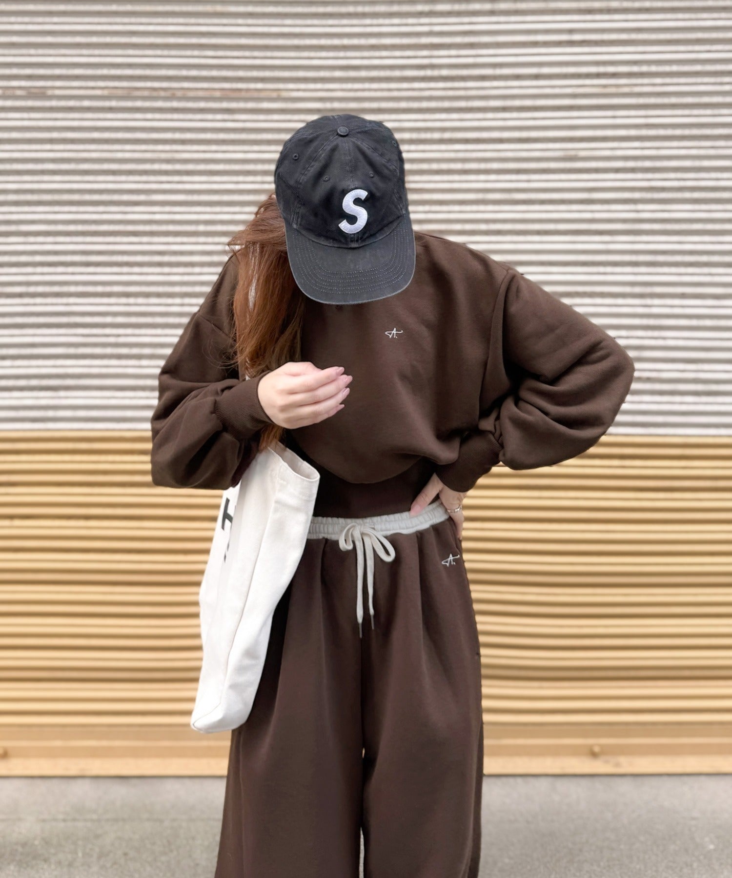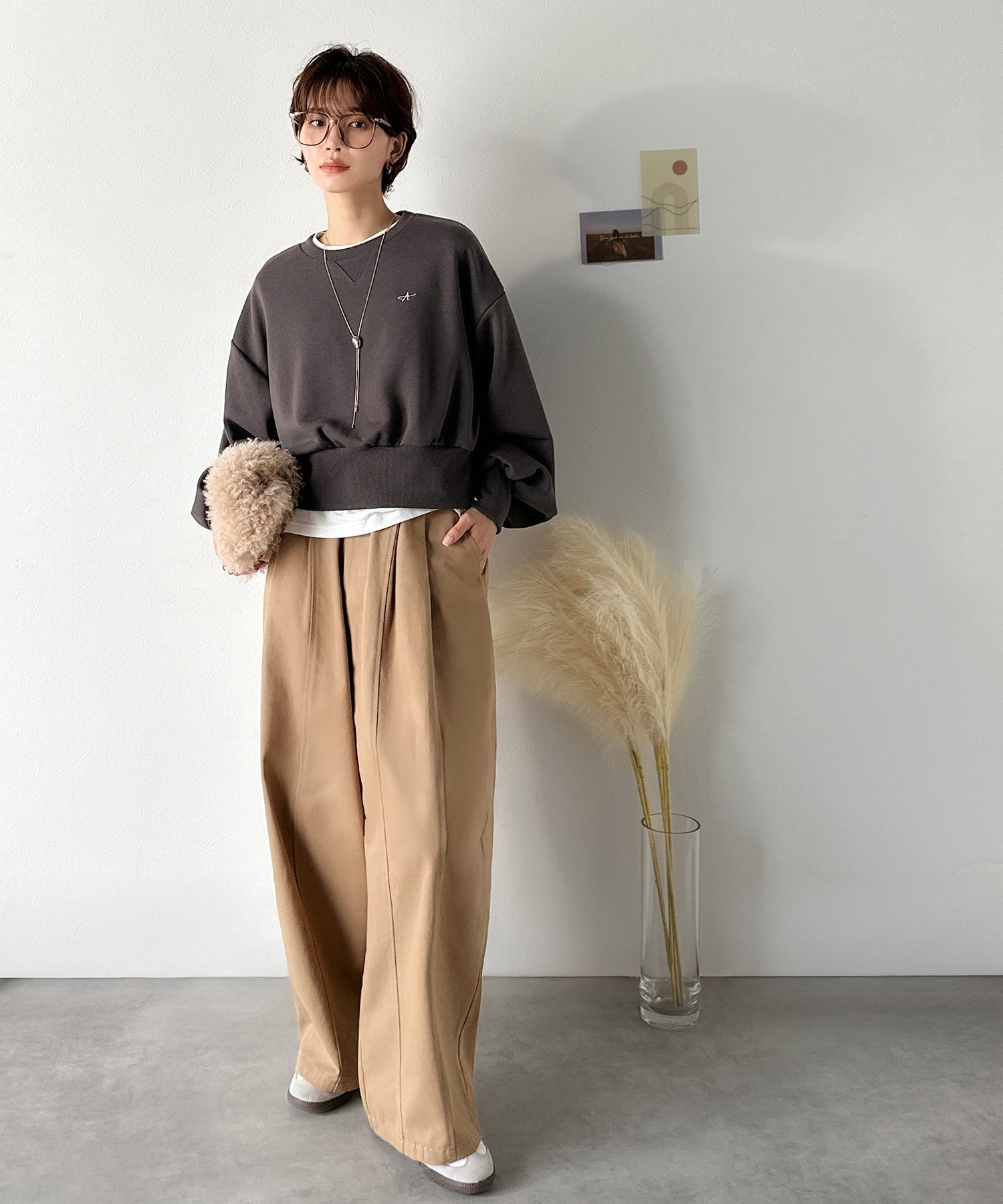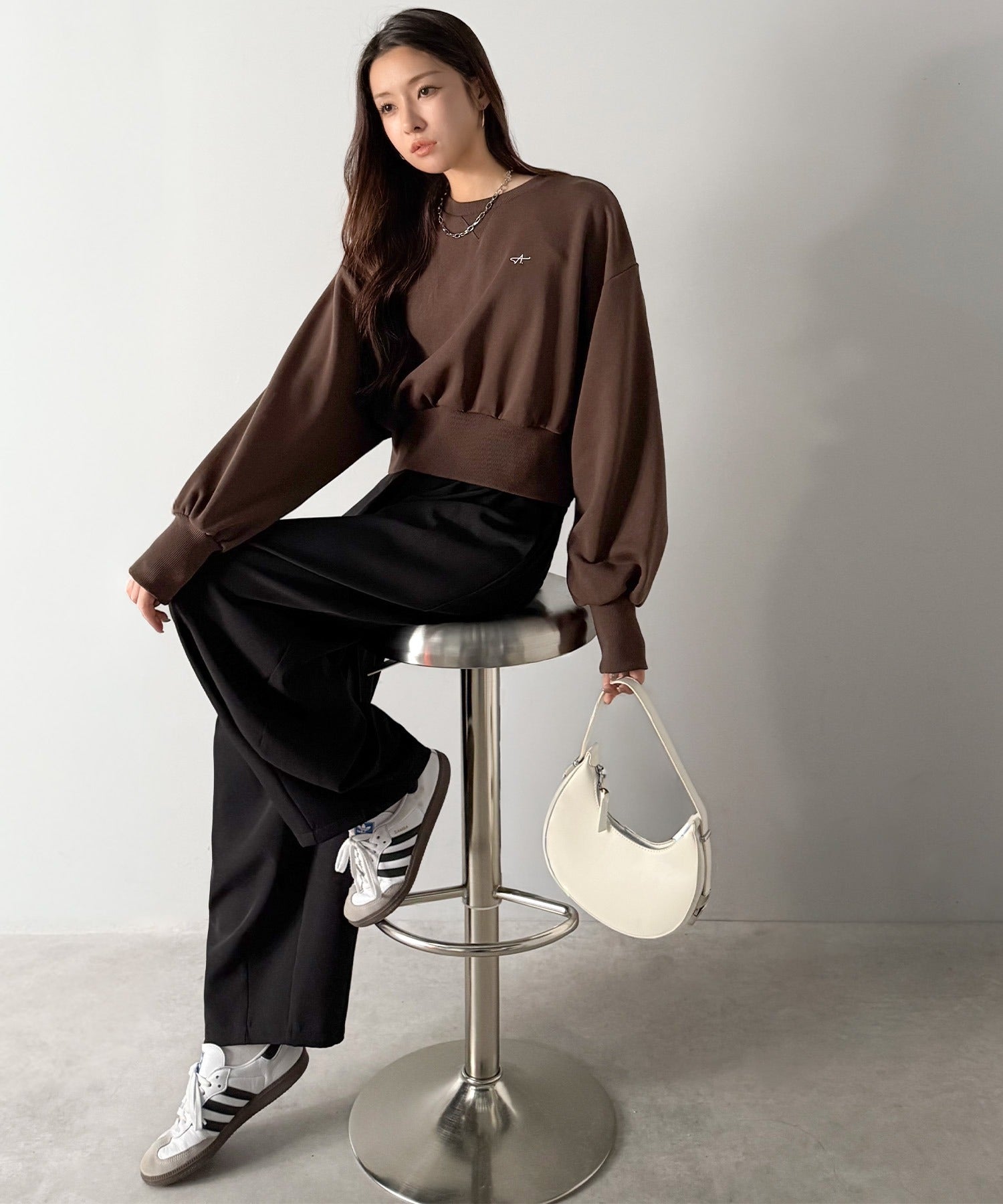 《AYA×クラシカルエルフコラボ》カジュアルなのにちゃんと女っぽ♪胸元刺繍が映える。クロップド丈裏毛スウェット(セットアップ可) ce1010520