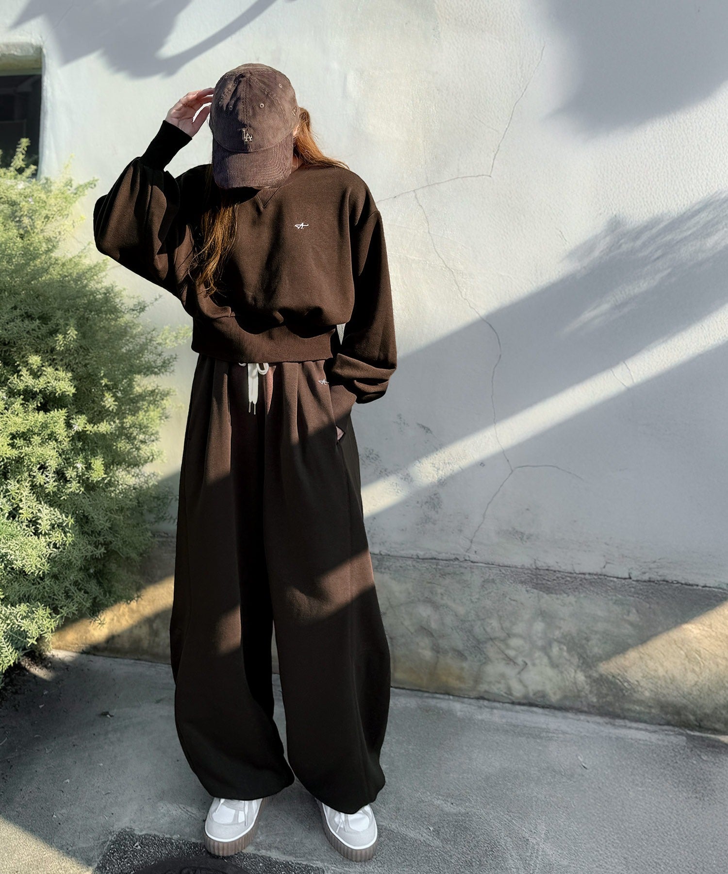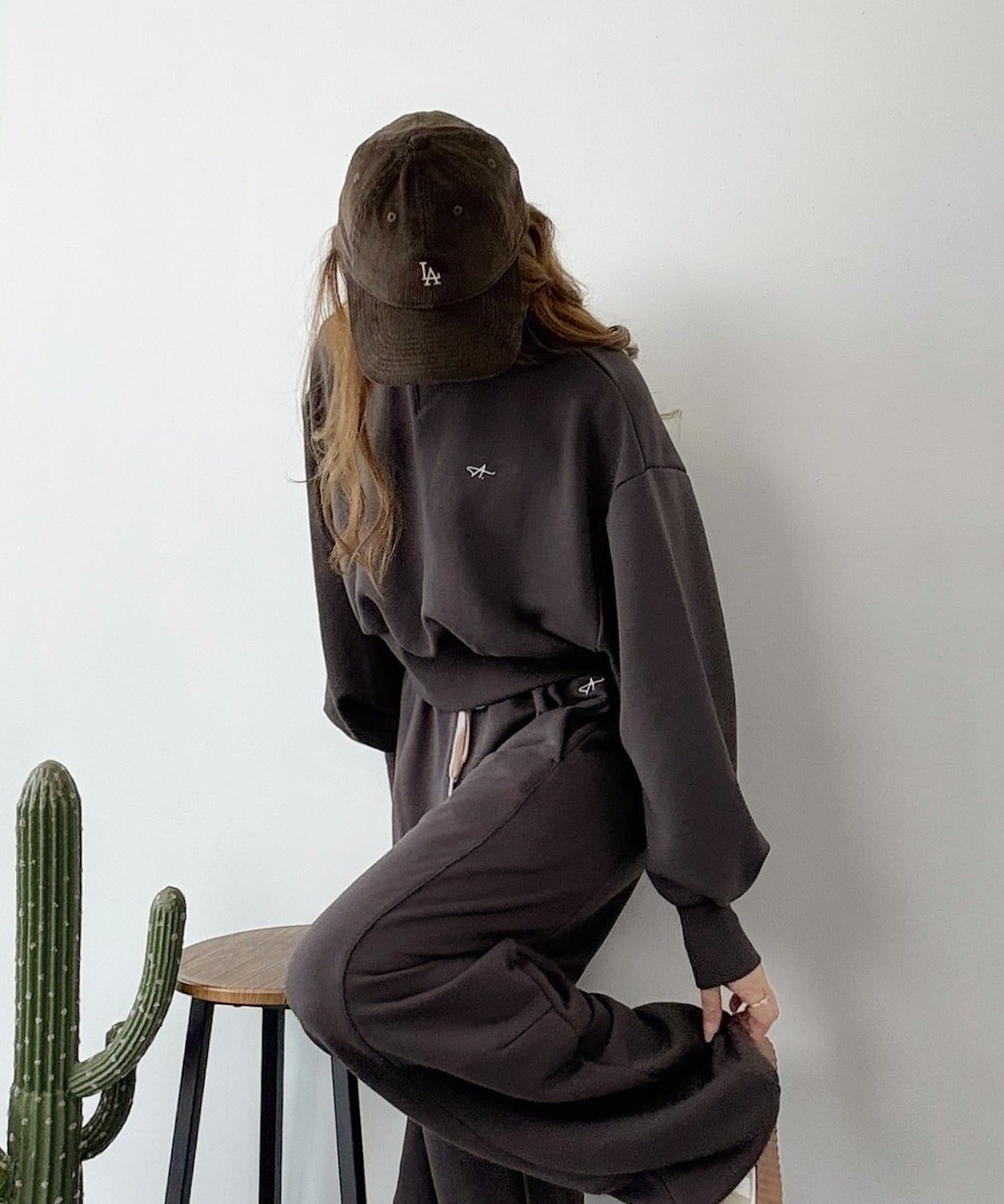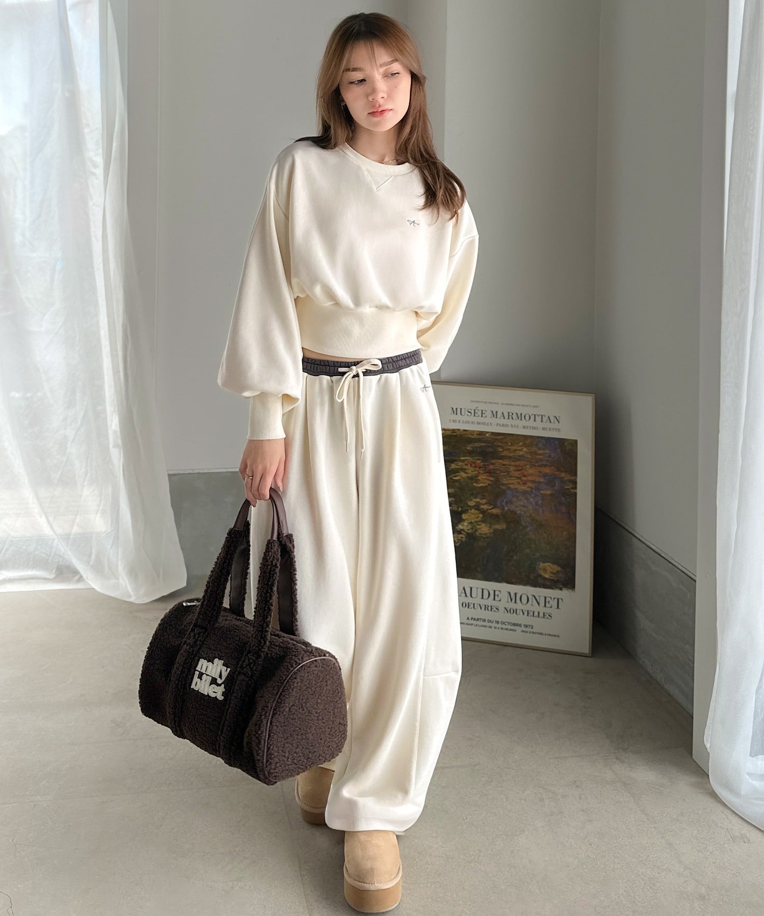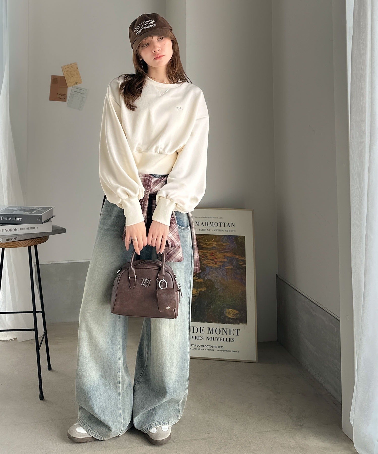 《AYA×クラシカルエルフコラボ》カジュアルなのにちゃんと女っぽ♪胸元刺繍が映える。クロップド丈裏毛スウェット(セットアップ可) ce1010520