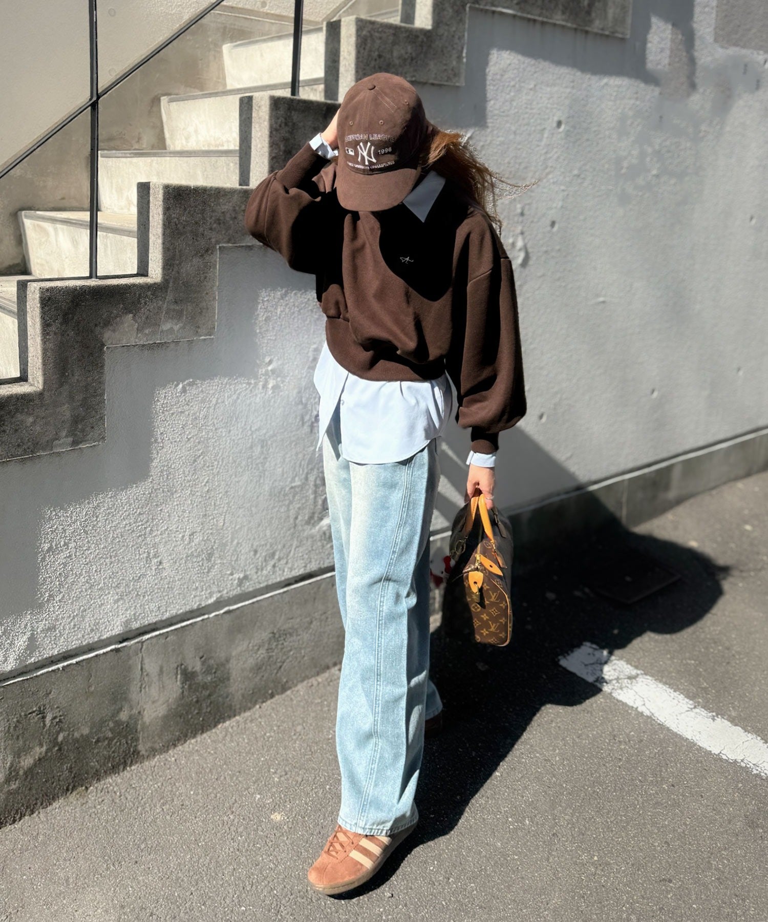 デニムやスカートとの相性も抜群で、同素材のボトムスと合わせればこなれたセットアップスタイルに◎