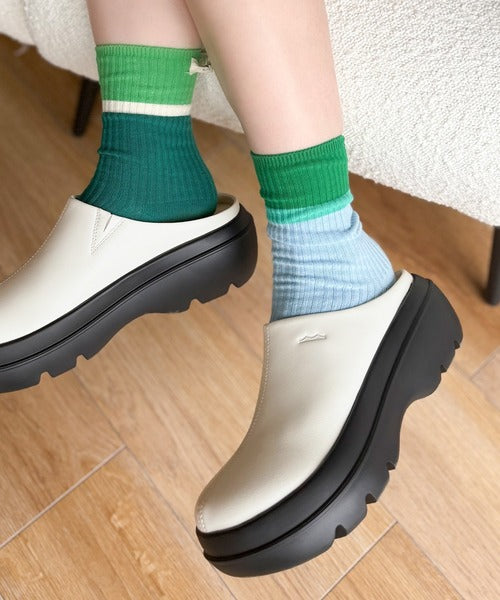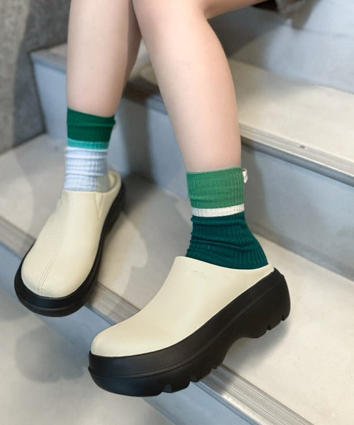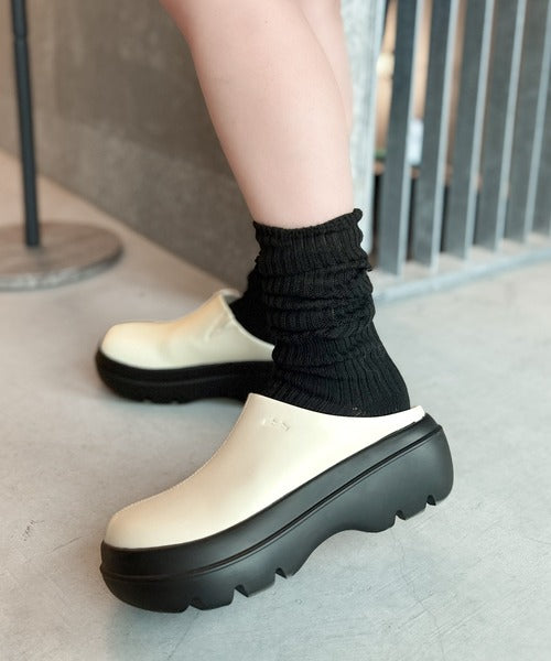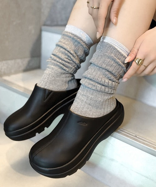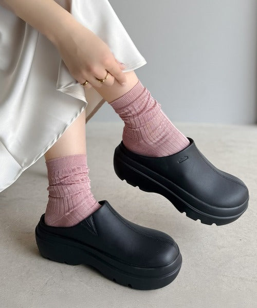 《JaVaジャバコラボ》【コロかる】コロンと可愛いトレンド感と履きやすさ。軽量厚底ステッチデザインサボ jv1129024