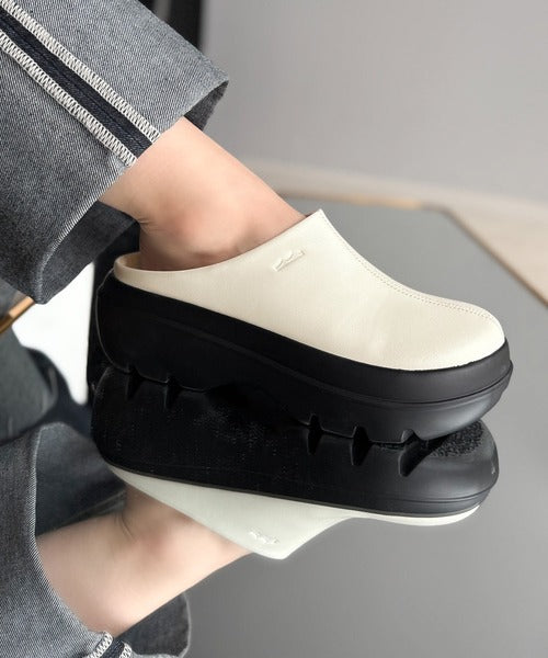甲のステッチがさりげなく効いたJaVaコラボの厚底サボ。