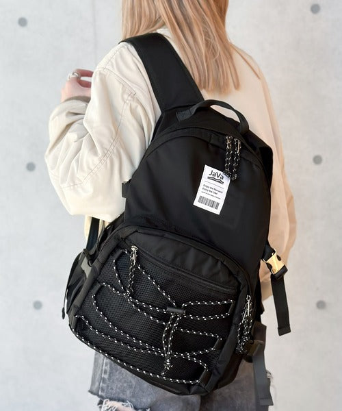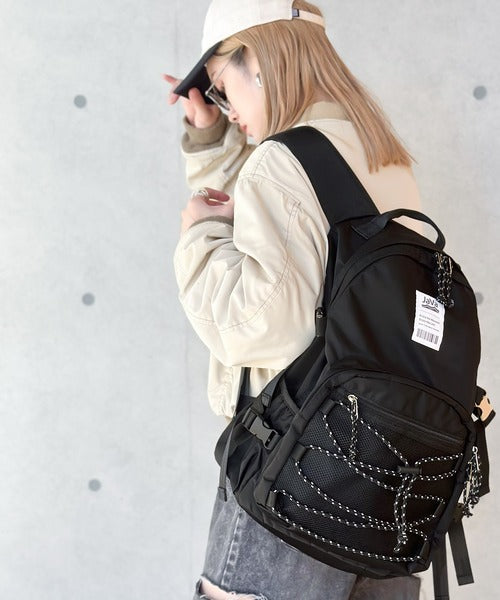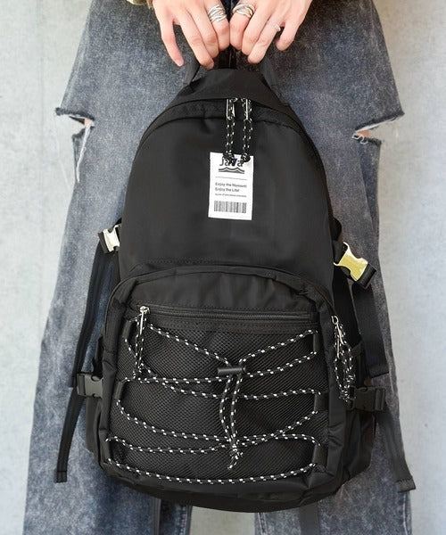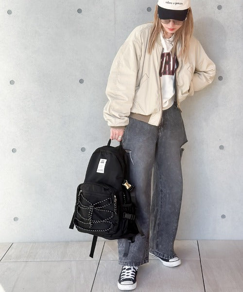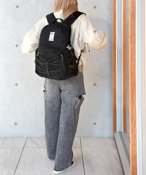 シンプルながらも、前ポケットにあしらったトレンドのMIXカラーのロープがポイントに。