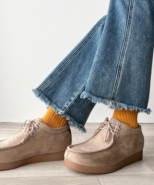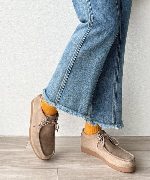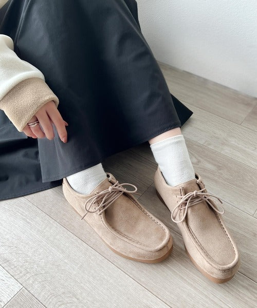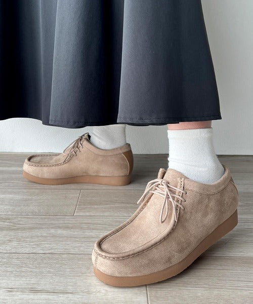 撥水機能も兼ね備えたスウェードモカシンシューズ。