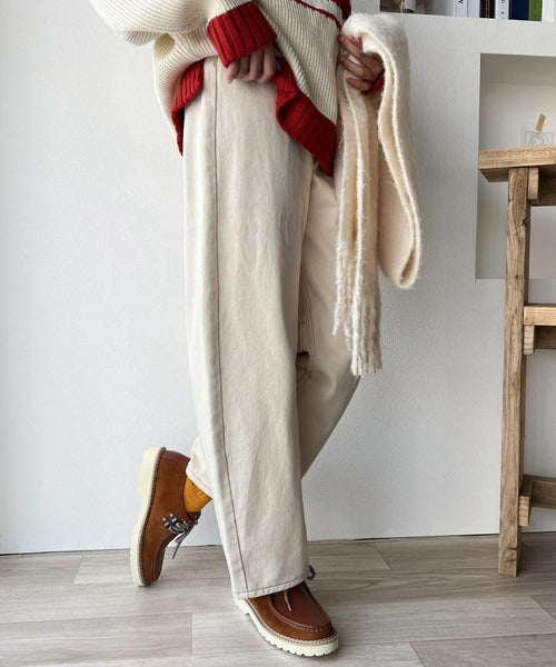 デニムやカーゴパンツなどのカジュアル系はもちろん、スラックスにも合わせてきれいめコーデにも合います。