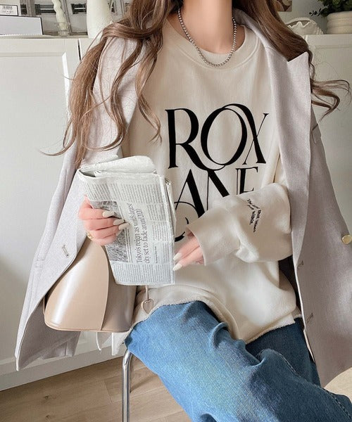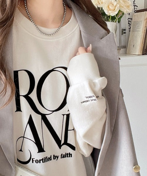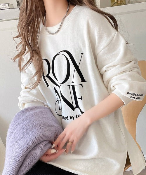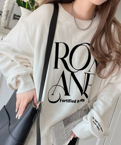 大人の洗練されたカジュアルスタイルに。微起毛素材フロッキーロゴプリント袖刺繍スウェット ce1010353