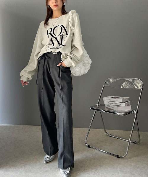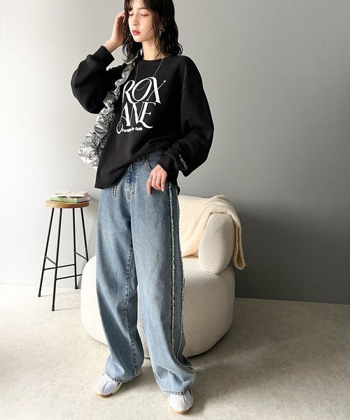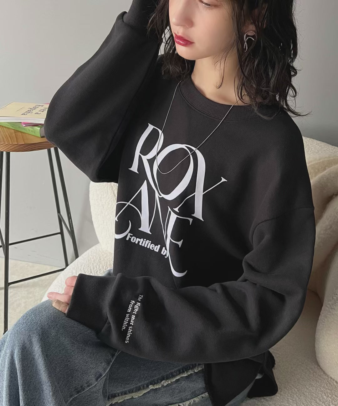 カジュアルスタイルに洗練さを加える袖刺繍&フロッキープリントのロゴスウェットは、快適さとおしゃれを両立させたアイテム。