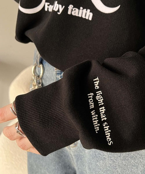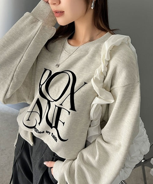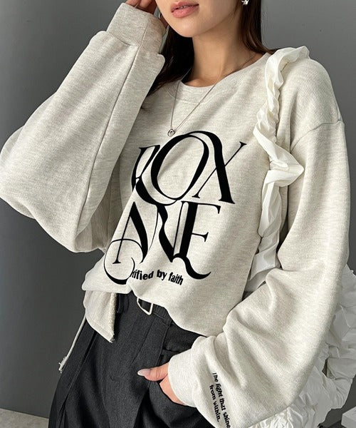 袖刺繍フロッキープリントロゴスウェットの登場です。