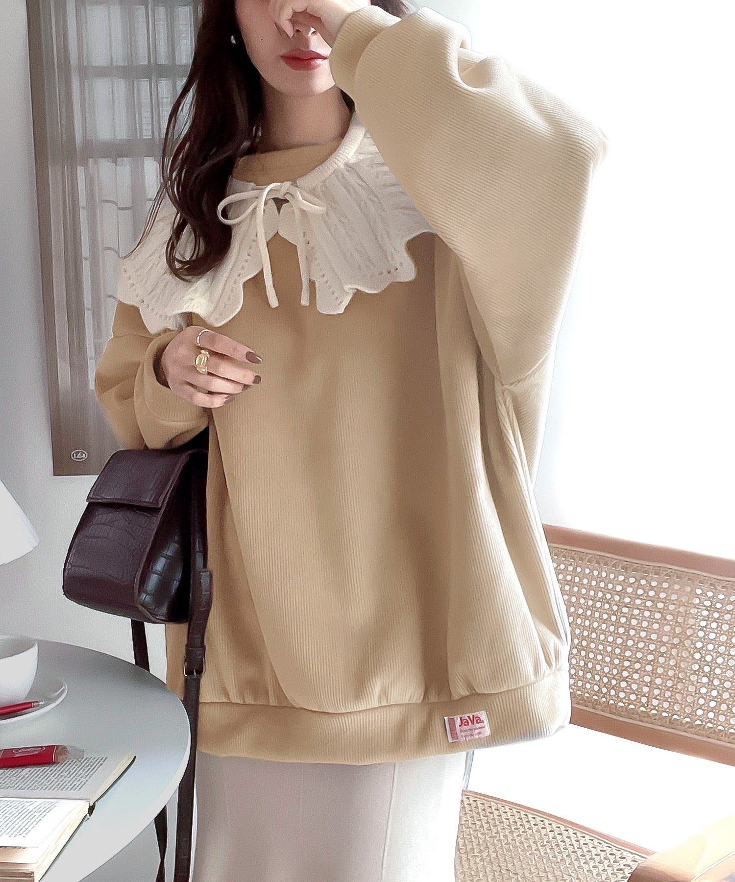 《JaVaジャバ コラボ》ベロアで魅せる大人カジュアル。2wayリバーシブルベロアプルオーバー ce1050015