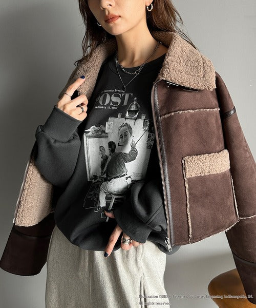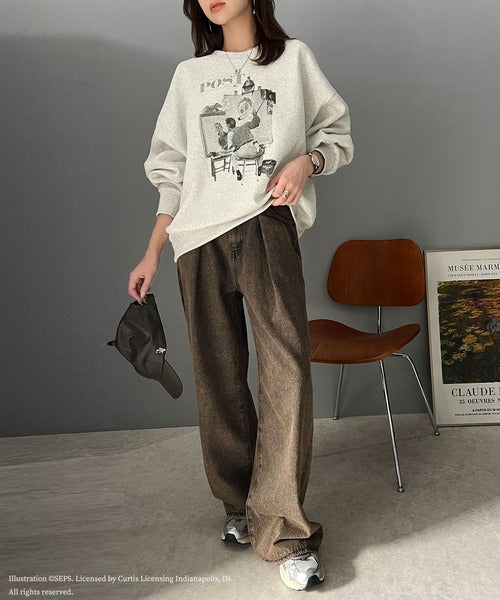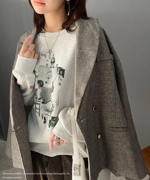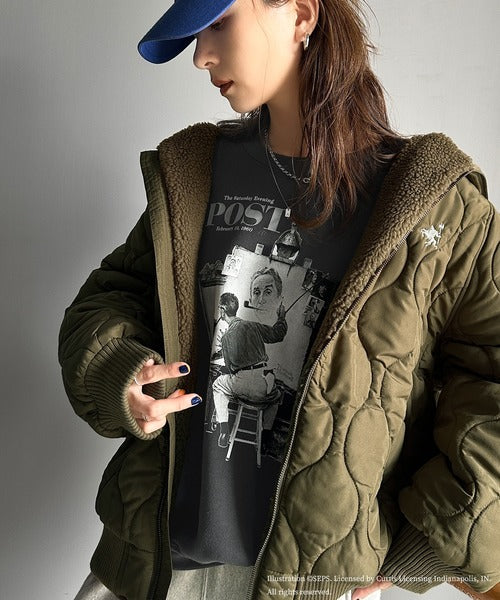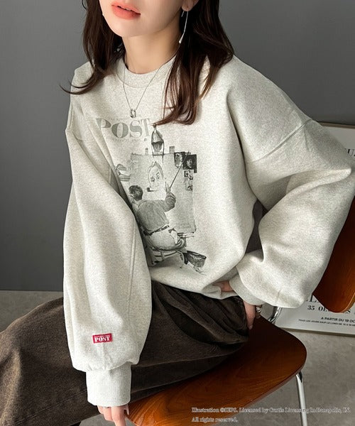 『THE SATURDAY EVENING POST』前後2way裏起毛プルオーバー【Rockwell's Triple Self-Portrait Reprint】 ce1260307