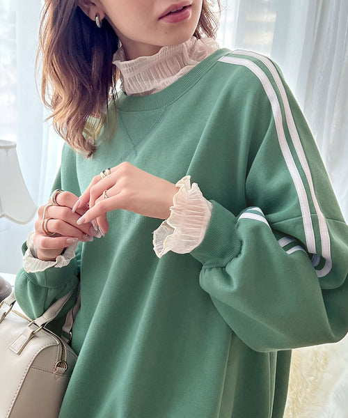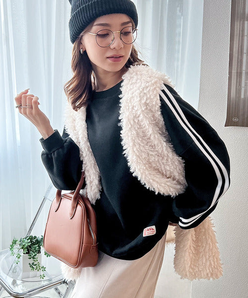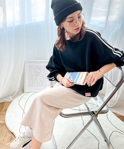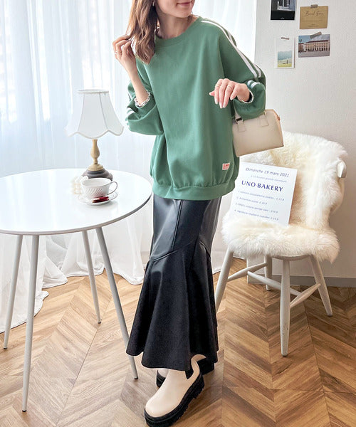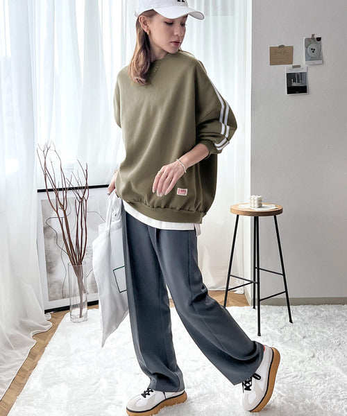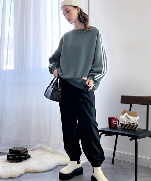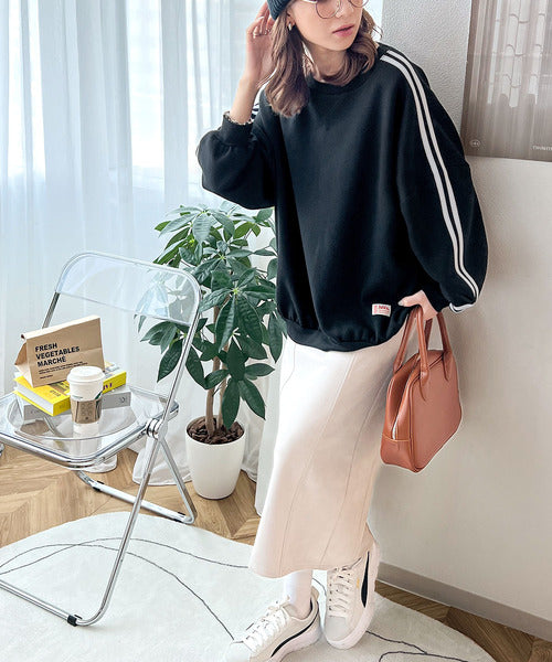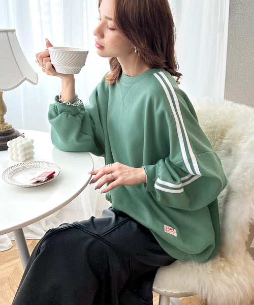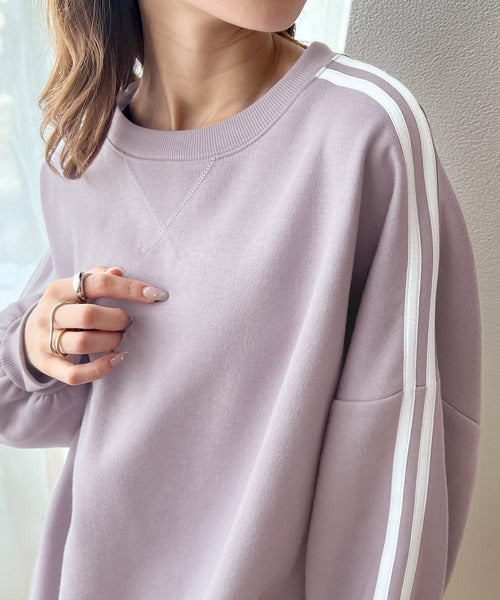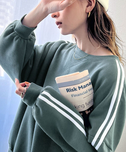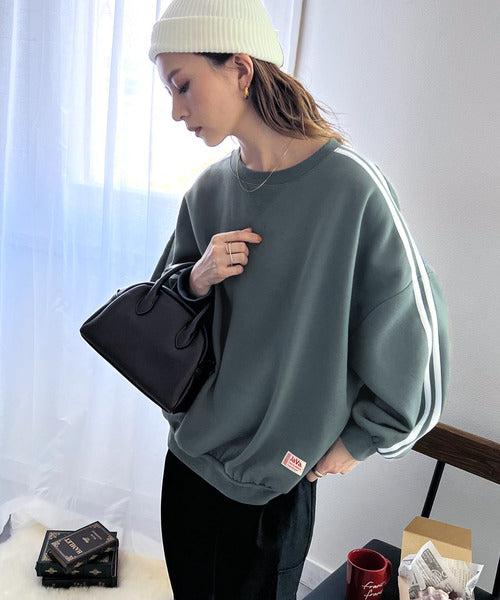 袖のダブルラインが目を引く、ひと癖効いた裏起毛スウェット。