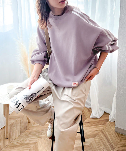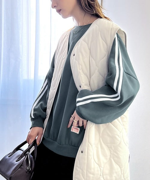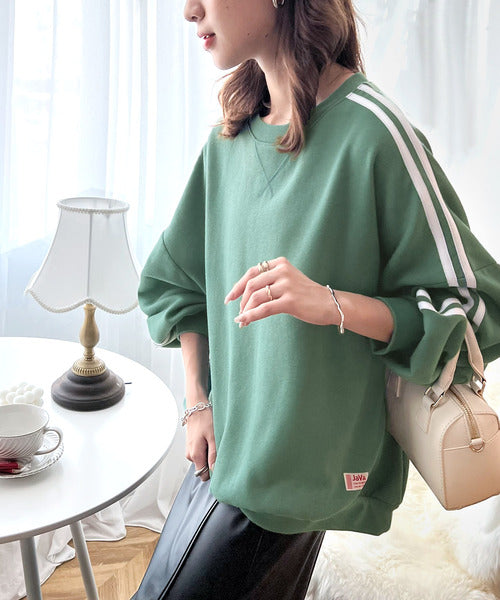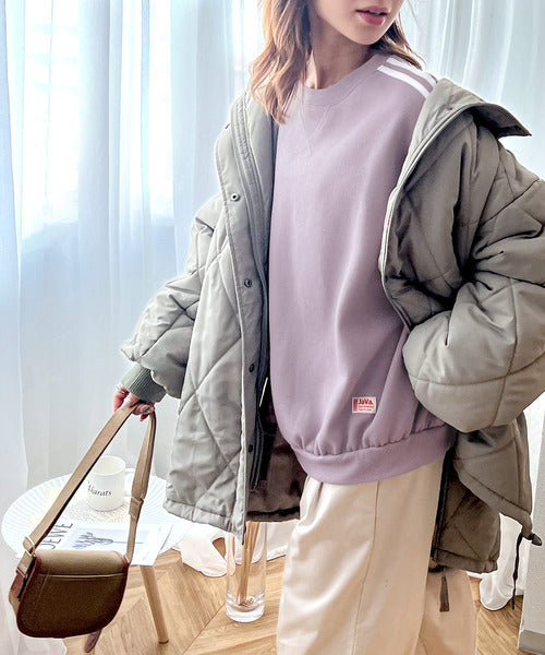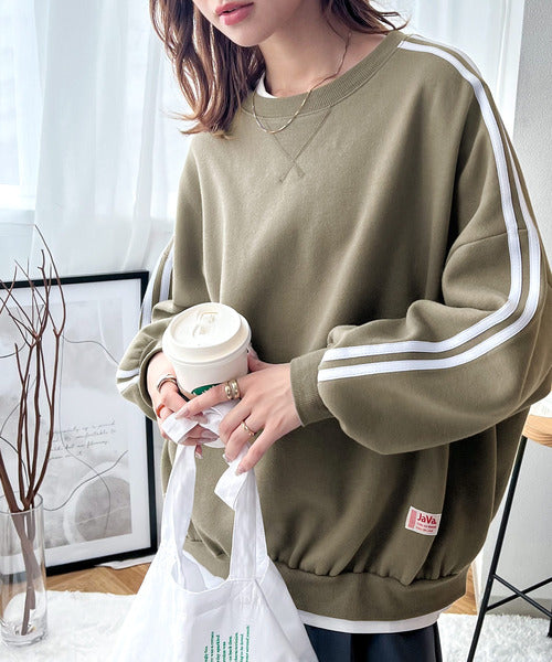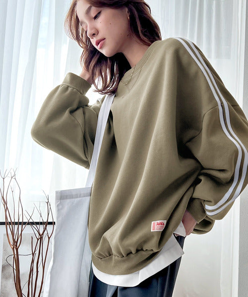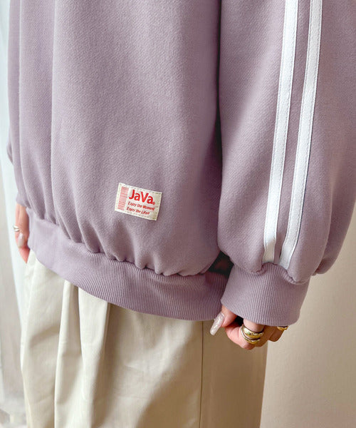 《JaVa ジャバコラボ》レトロ×スポーツMIX。袖ダブルライン裏起毛スウェットプルオーバー jv0780006