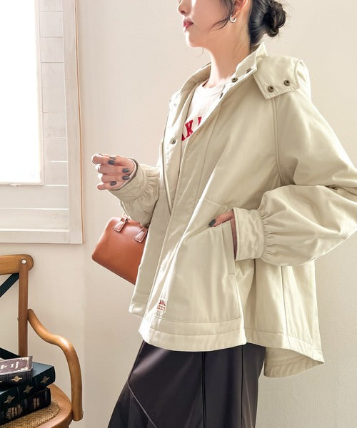 カジュアルなライトアウターにフレアの女性らしさを盛り込んだ1枚。