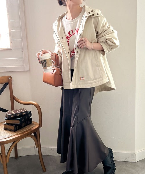 《JaVaジャバ コラボ》おめかし感100%。中綿入りラウンドヘムフレアマウンテンパーカー jv0940094